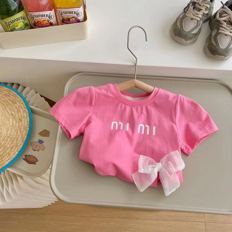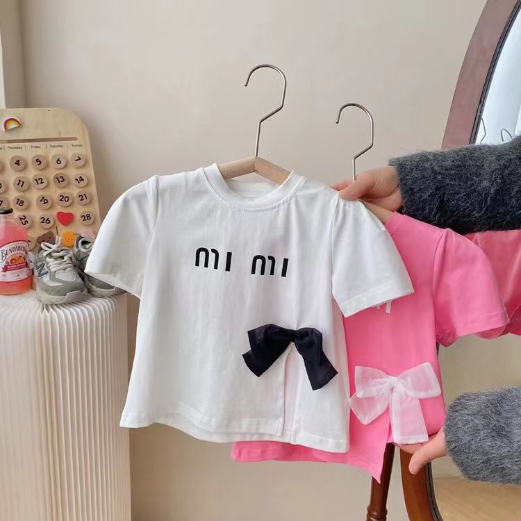 여자 반팔 티셔츠 여름 2024 새로운 어린이 서양식 소녀상 아기 여성의 여름 순면 베이스 셔츠스토어 가기