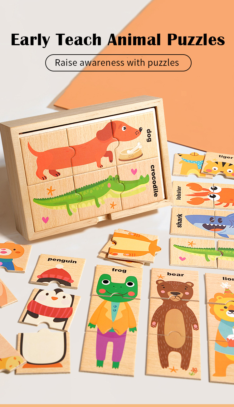 만화 동물인지 퍼즐 아기 영어 단어 인지 퍼즐 나무 어린이 교육 장난감 국경 폭발스토어 가기