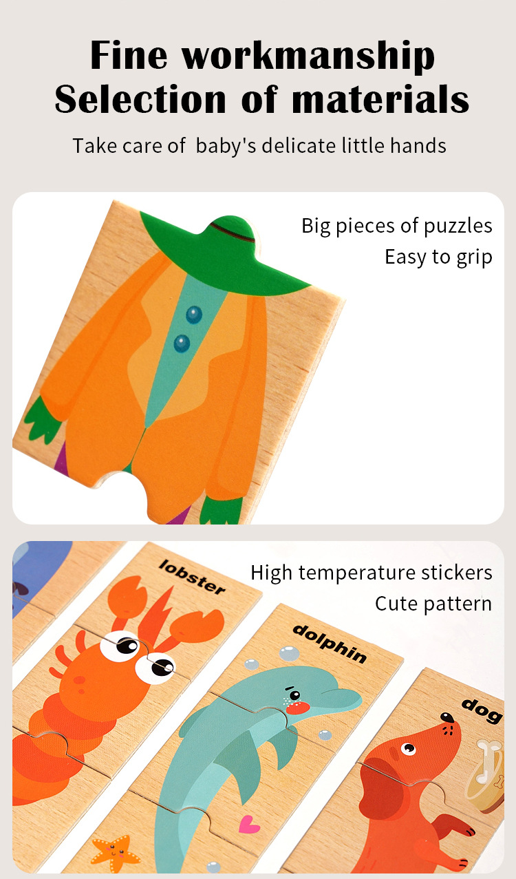 만화 동물인지 퍼즐 아기 영어 단어 인지 퍼즐 나무 어린이 교육 장난감 국경 폭발