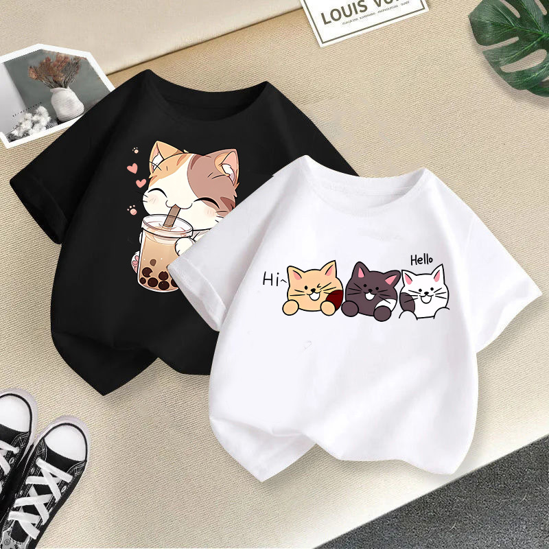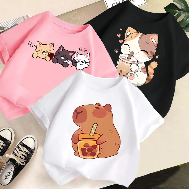 국경 간 아동복 소년 소녀 반팔 어린이 티셔츠 2025 여름 새로운 귀여운 캐주얼 반소매 탑 빅 키즈스토어 가기
