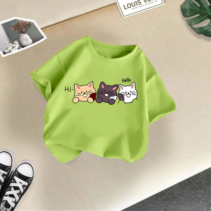 • 그래스 그린 헤이 세 마리 고양이 반팔