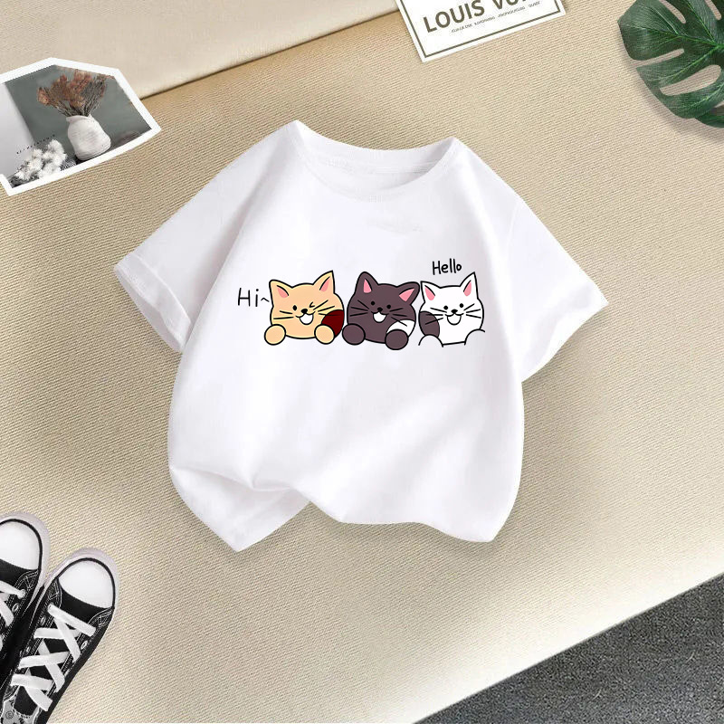 • 흰색 헤이 세 마리 고양이 반팔