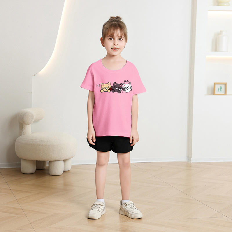 국경 간 아동복 소년 소녀 반팔 어린이 티셔츠 2025 여름 새로운 귀여운 캐주얼 반소매 탑 빅 키즈