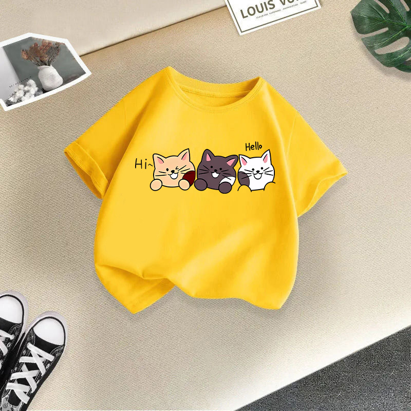 • 노란색 헤이 세 마리 고양이 반팔