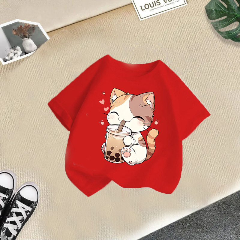 • 빨간 밀크티를 마시는 고양이 반팔