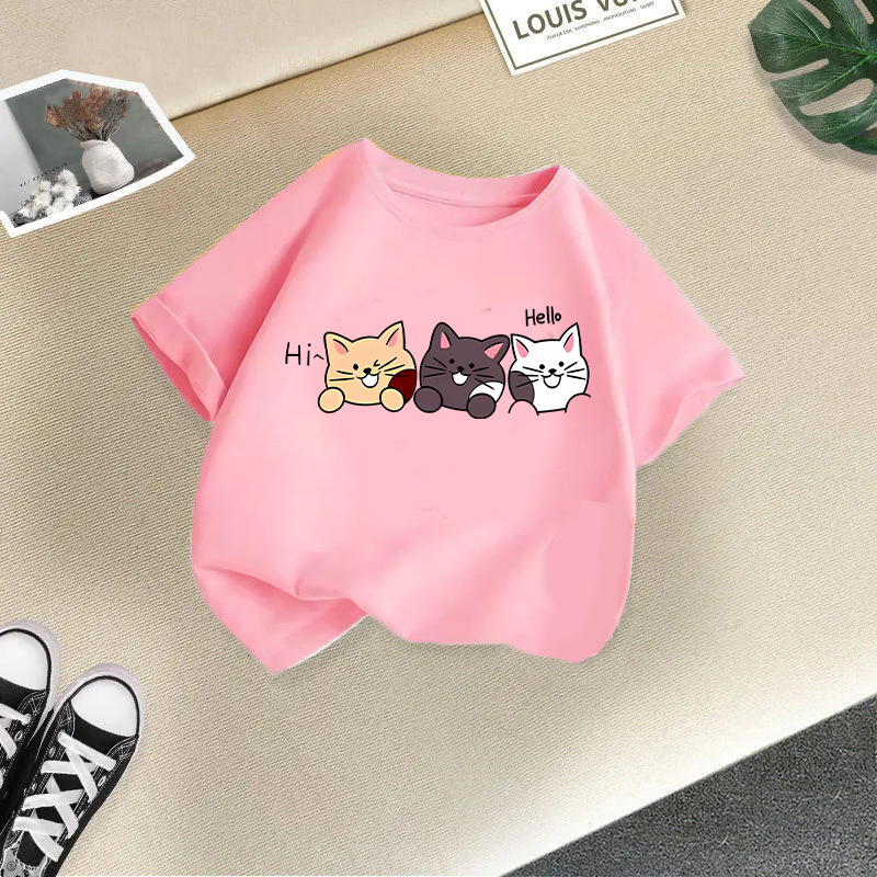 • 핑크 헤이 세 마리 고양이 반팔