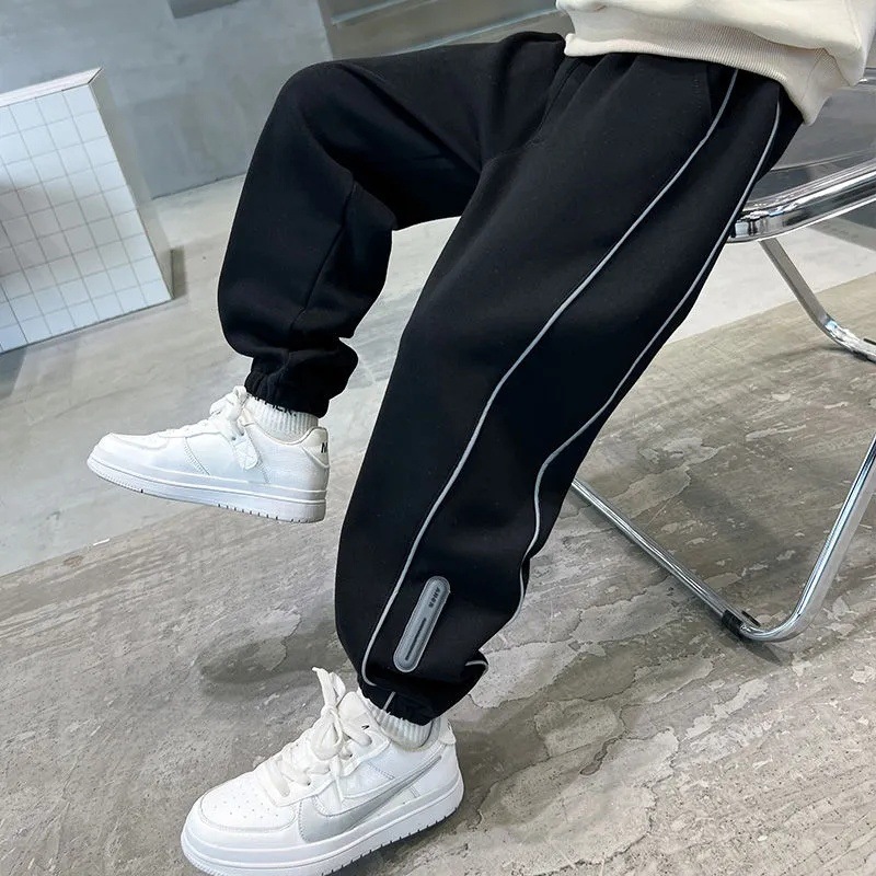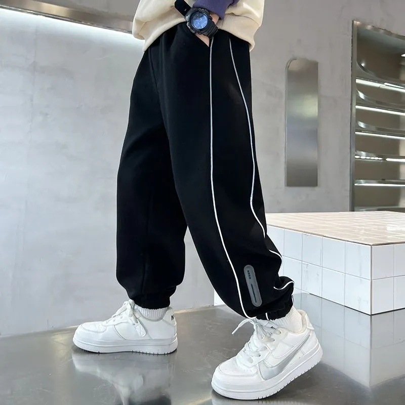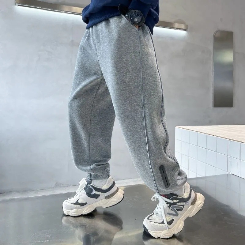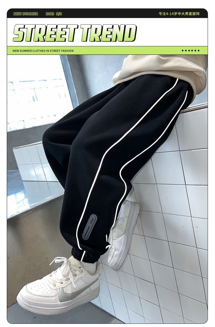 2024 소년 봄과 가을 새로운 얇은 운동복 초등학교 학생 반사 유행 스포츠 바지 소년 패션 느슨한 바지