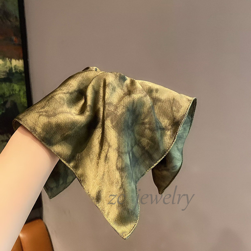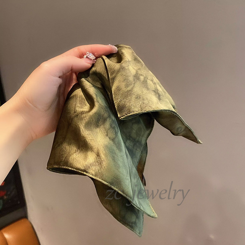 새로운 새로운 중국 스타일 그린 타이-염료 대형 스퀘어 스카프 장내 서클 여성 하이 엔드 로우 포니 테일 올 매치 헤어 액세서리 헤드 라인스토어 가기
