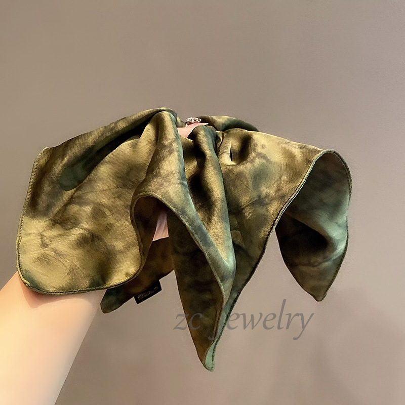 새로운 새로운 중국 스타일 그린 타이-염료 대형 스퀘어 스카프 장내 서클 여성 하이 엔드 로우 포니 테일 올 매치 헤어 액세서리 헤드 라인