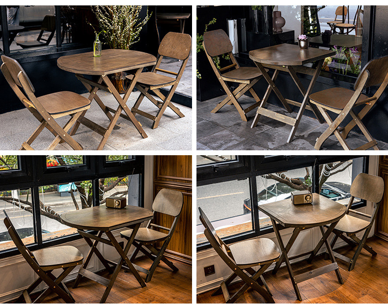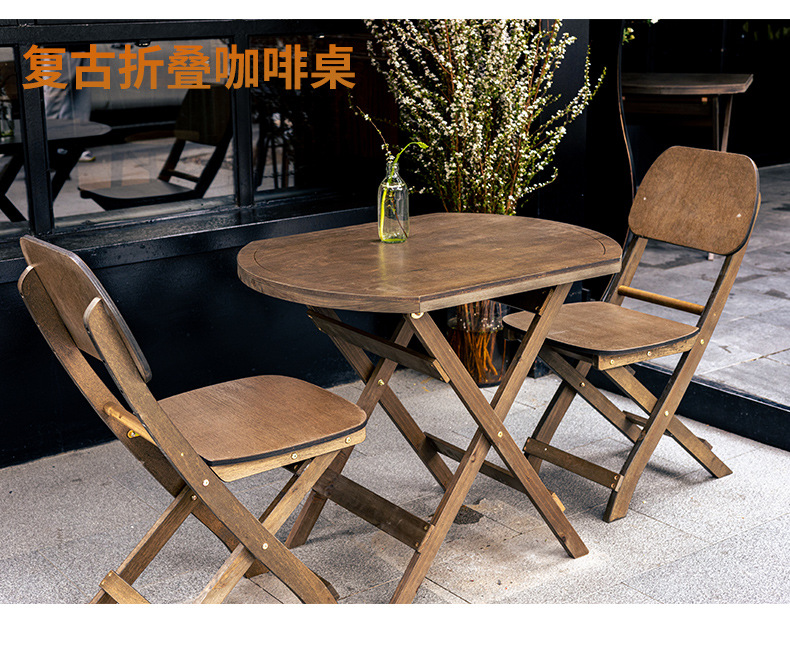 빈티지 접이식 라운드 테이블 솔리드 우드 스퀘어 테이블 거실 발코니 가구 식사 테이블 커피 테이블 및 의자 작은 아파트 커피 테이블 야외