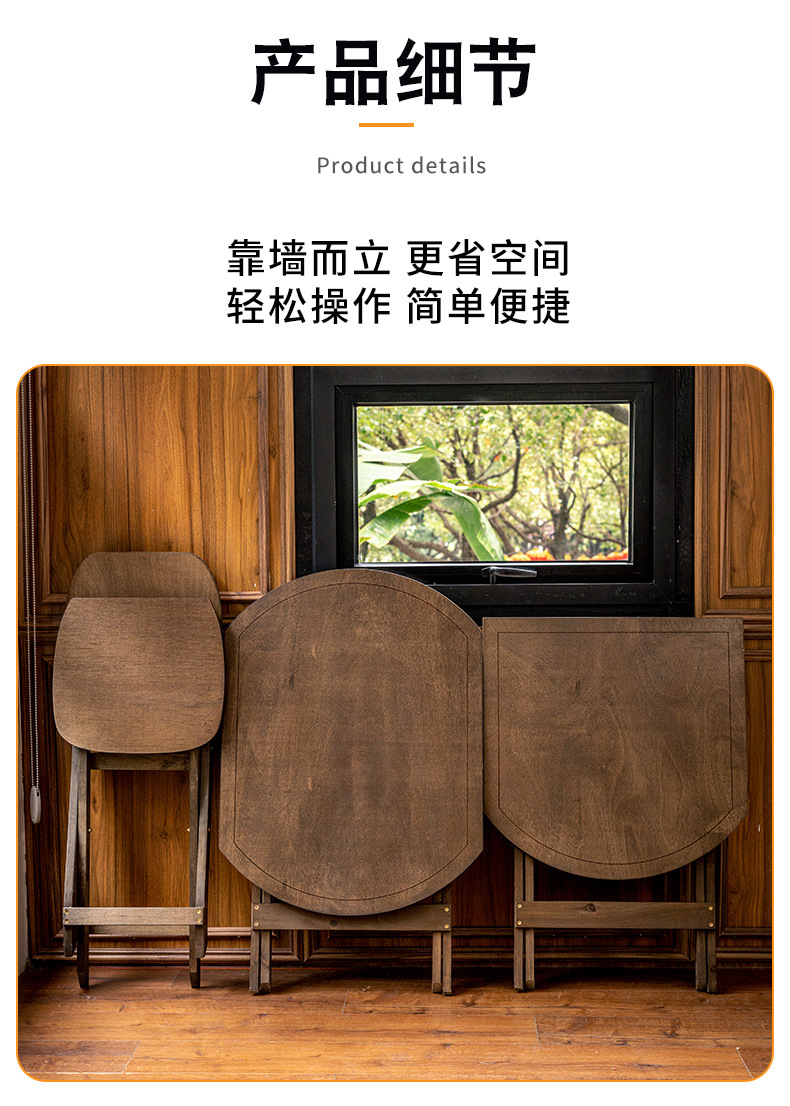 빈티지 접이식 라운드 테이블 솔리드 우드 스퀘어 테이블 거실 발코니 가구 식사 테이블 커피 테이블 및 의자 작은 아파트 커피 테이블 야외스토어 가기