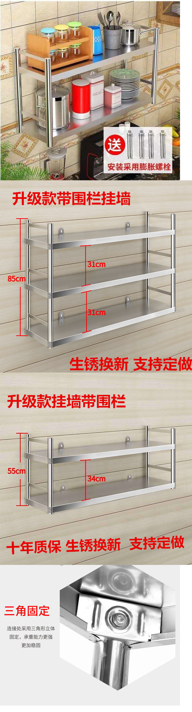 주방 벽걸이 형 스토리지 랙 스테인레스 스틸 선반 벽걸이 형 2 층 선반 벽걸이 형 천공 스토리지 캐비닛 스토리지 랙 3스토어 가기
