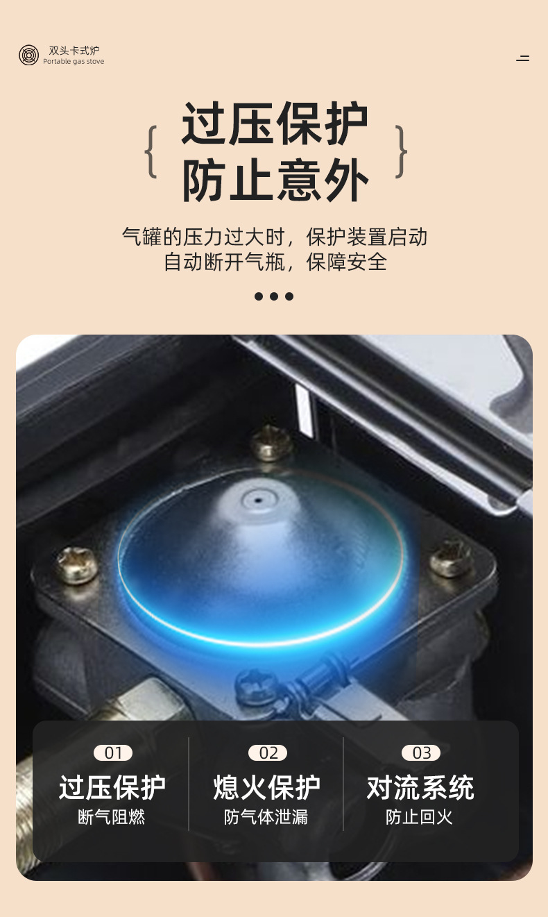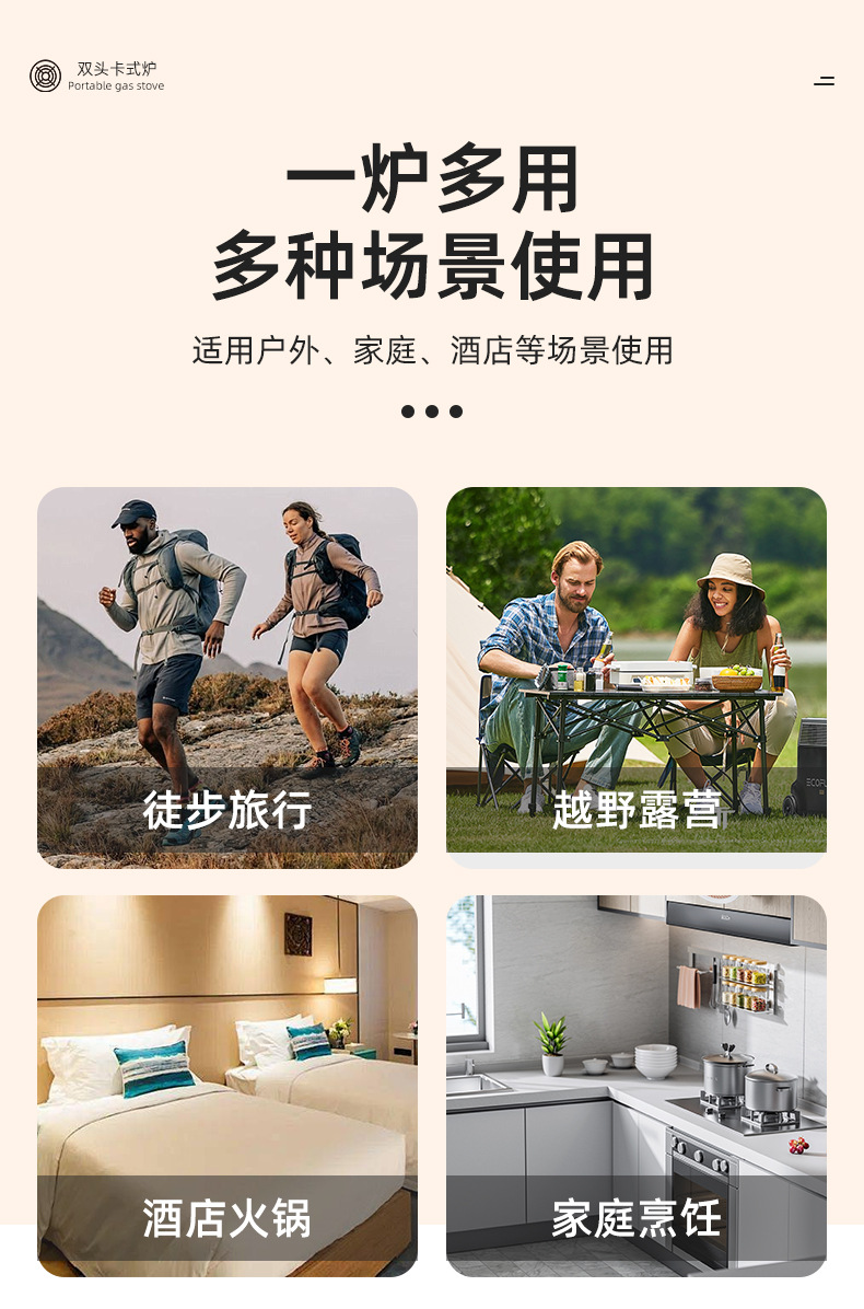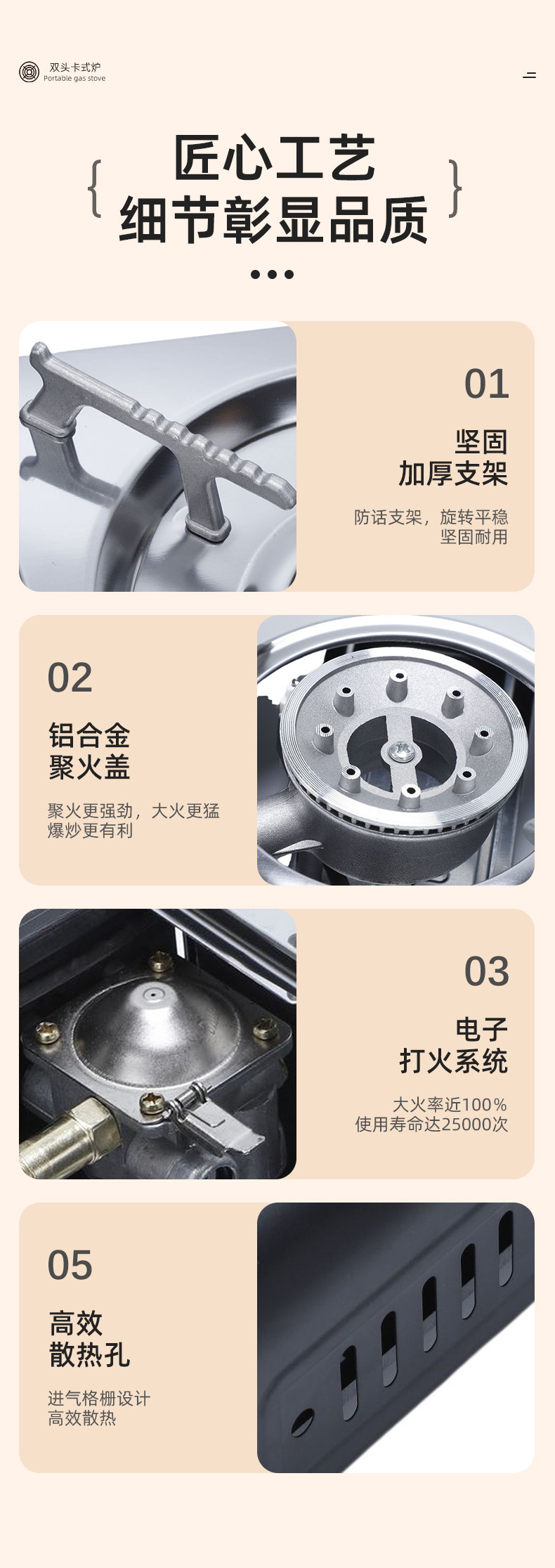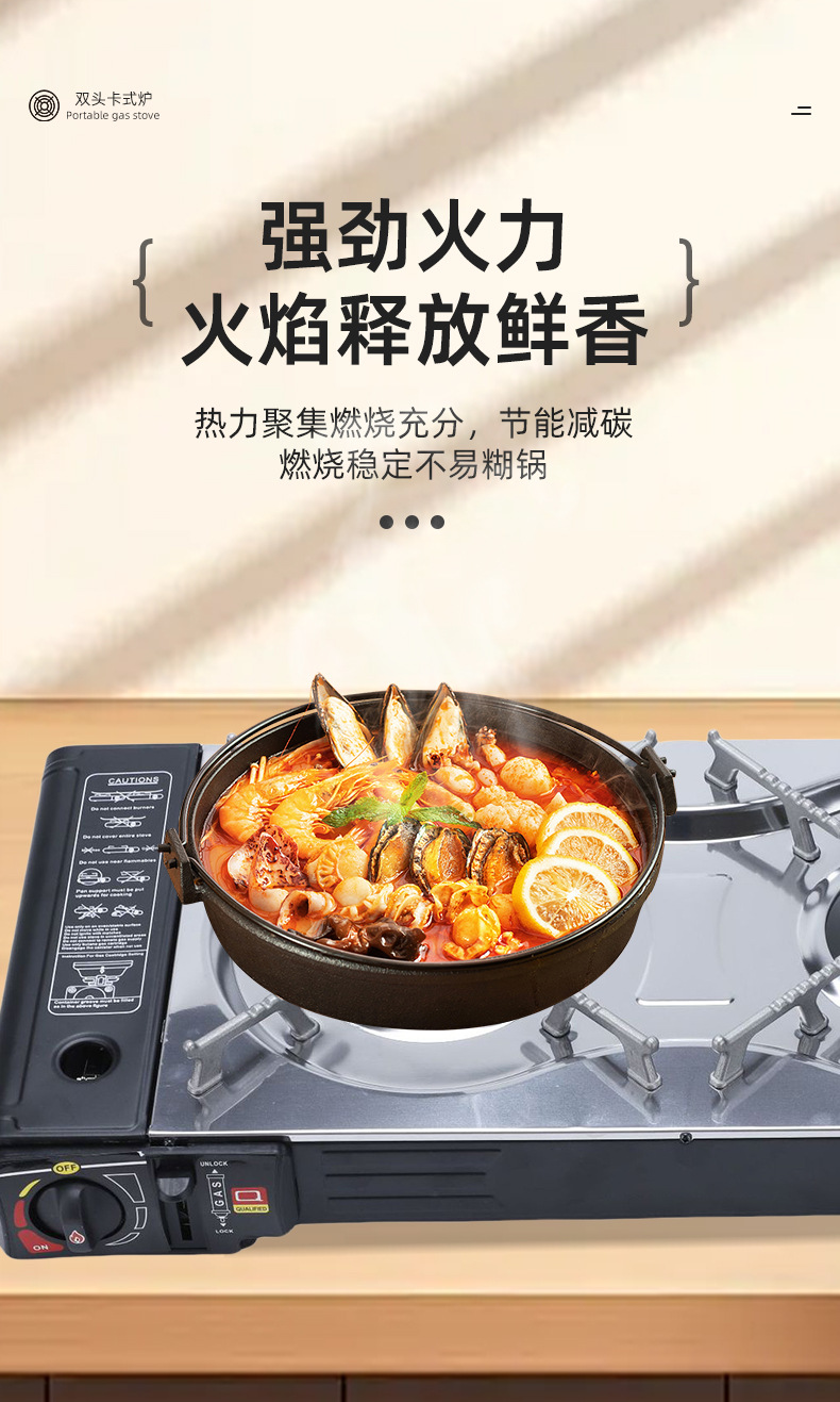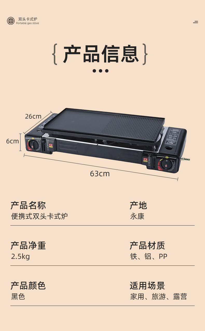 • 이중 스토브 카세트 스토브(스토브 헤드 분리 가능) 휴대용 상자 포장