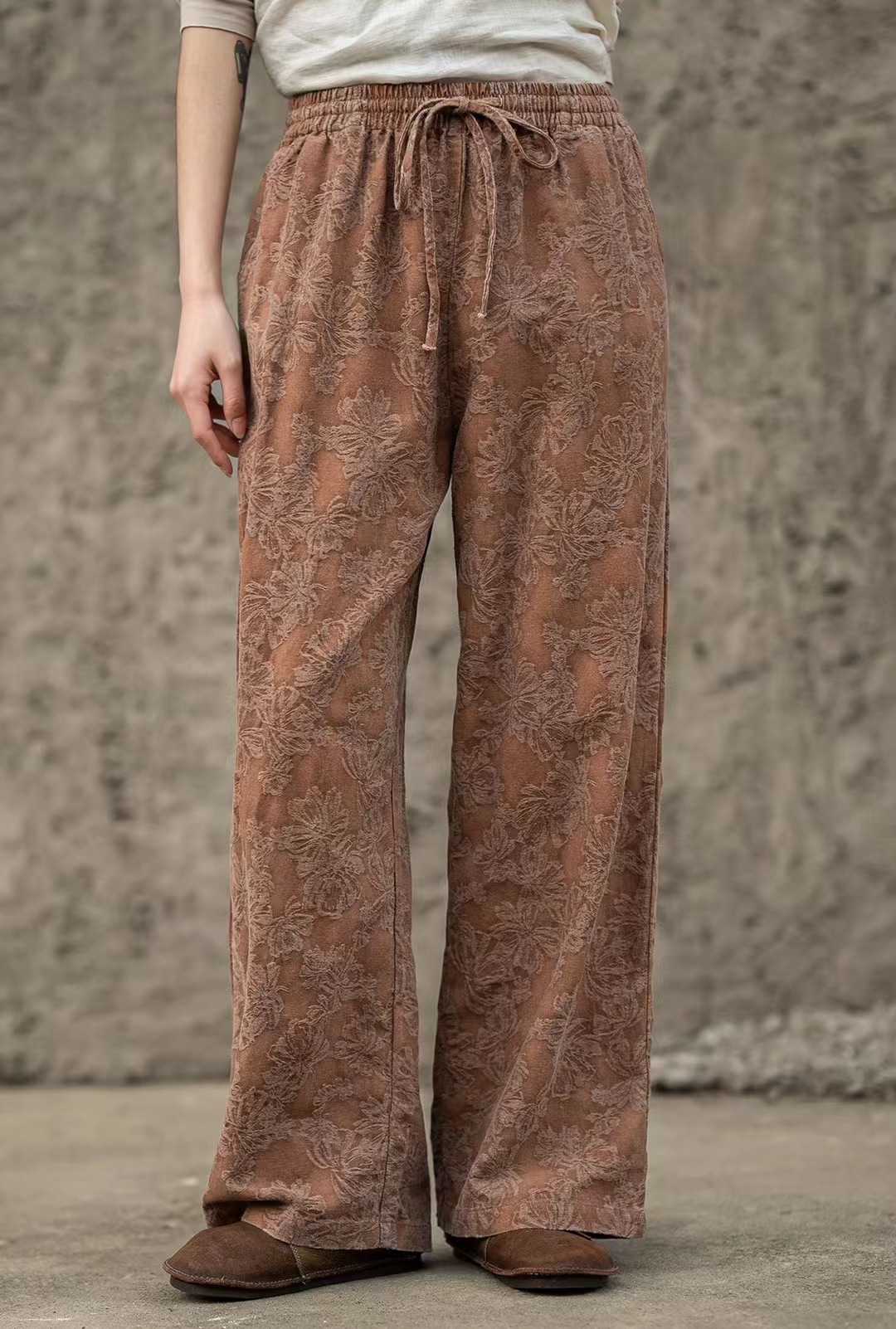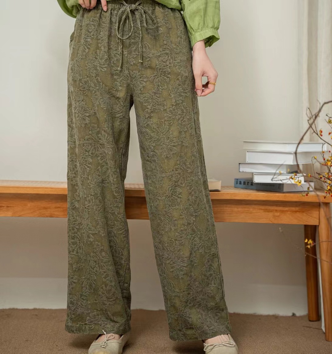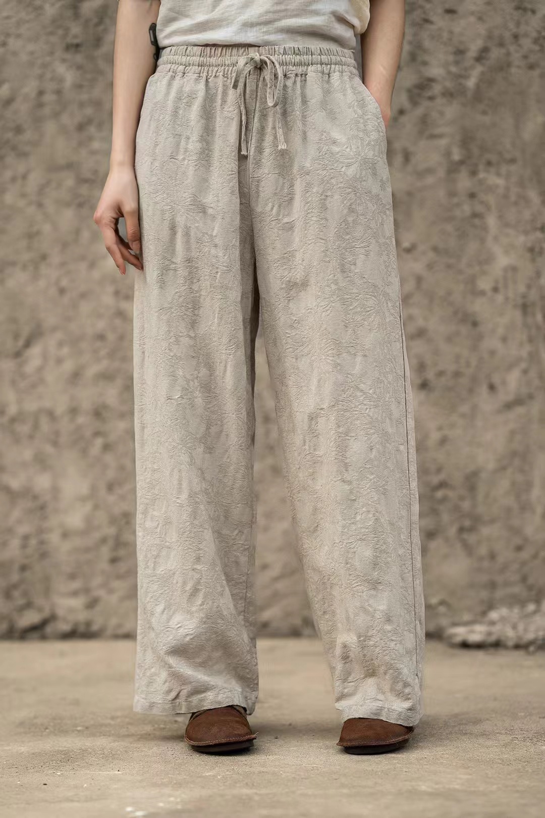 2025 봄 새로운 자카드 넓은 다리 바지 투약 느슨한 직선 바지 여성 중국 스타일 복고풍 캐주얼 바지