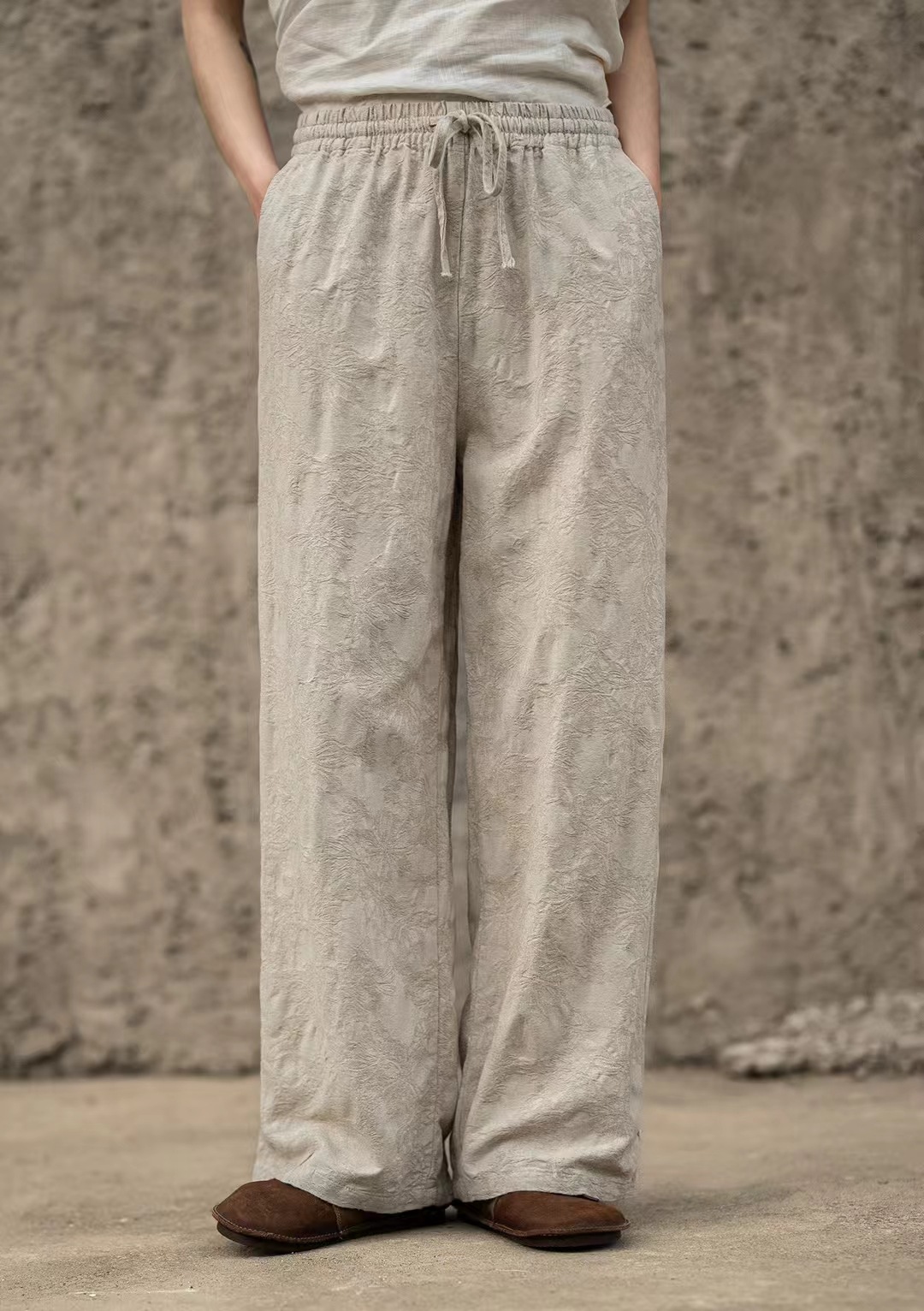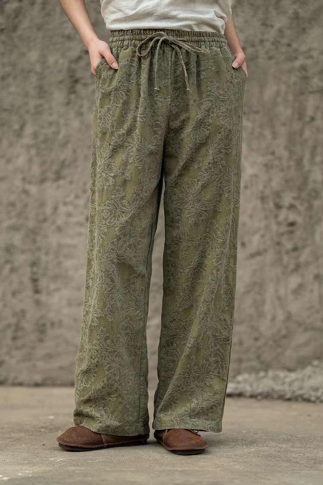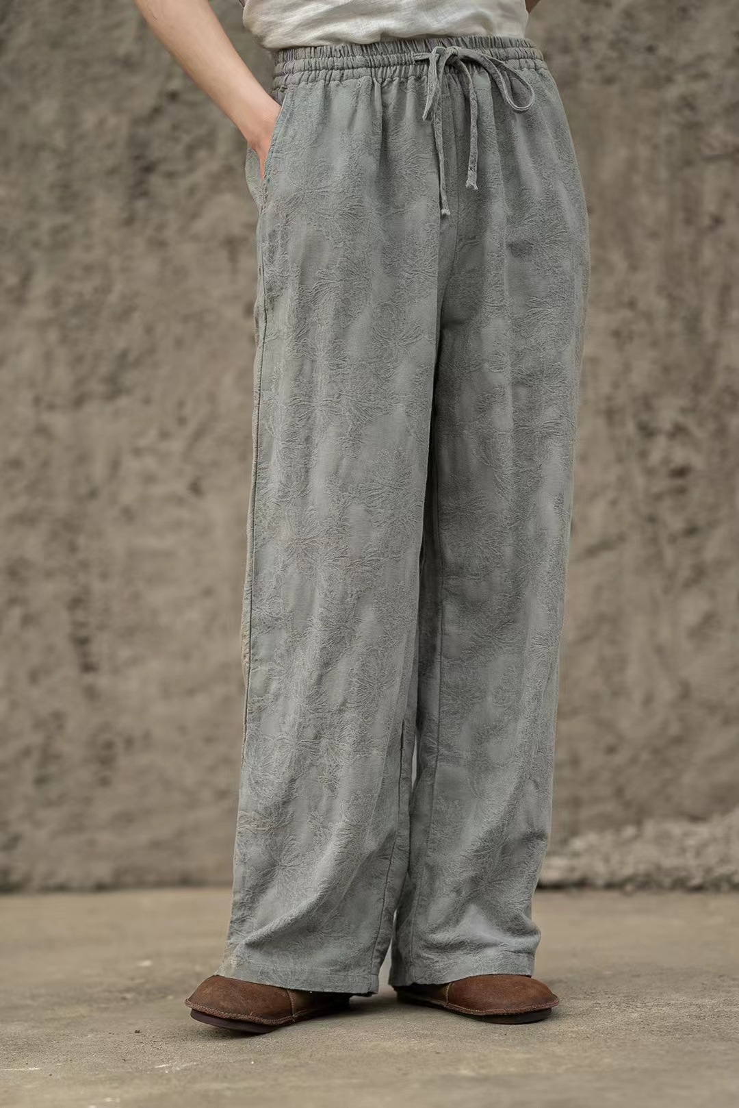 2025 봄 새로운 자카드 넓은 다리 바지 투약 느슨한 직선 바지 여성 중국 스타일 복고풍 캐주얼 바지