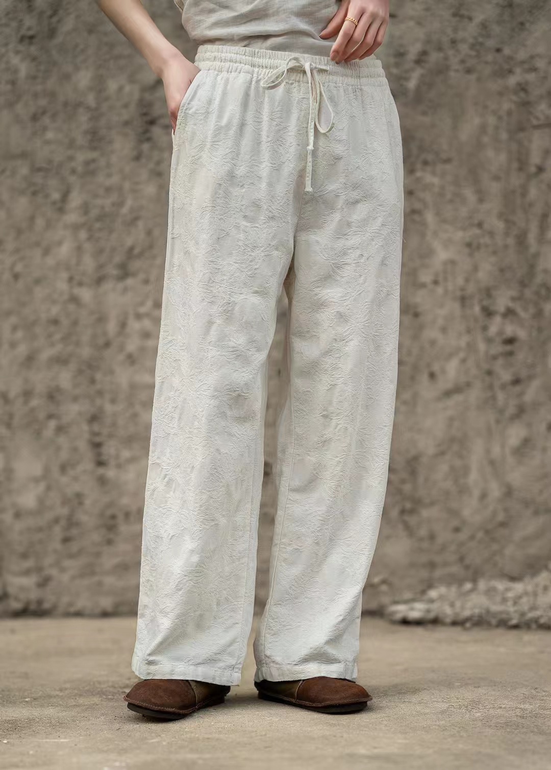 2025 봄 새로운 자카드 넓은 다리 바지 투약 느슨한 직선 바지 여성 중국 스타일 복고풍 캐주얼 바지스토어 가기