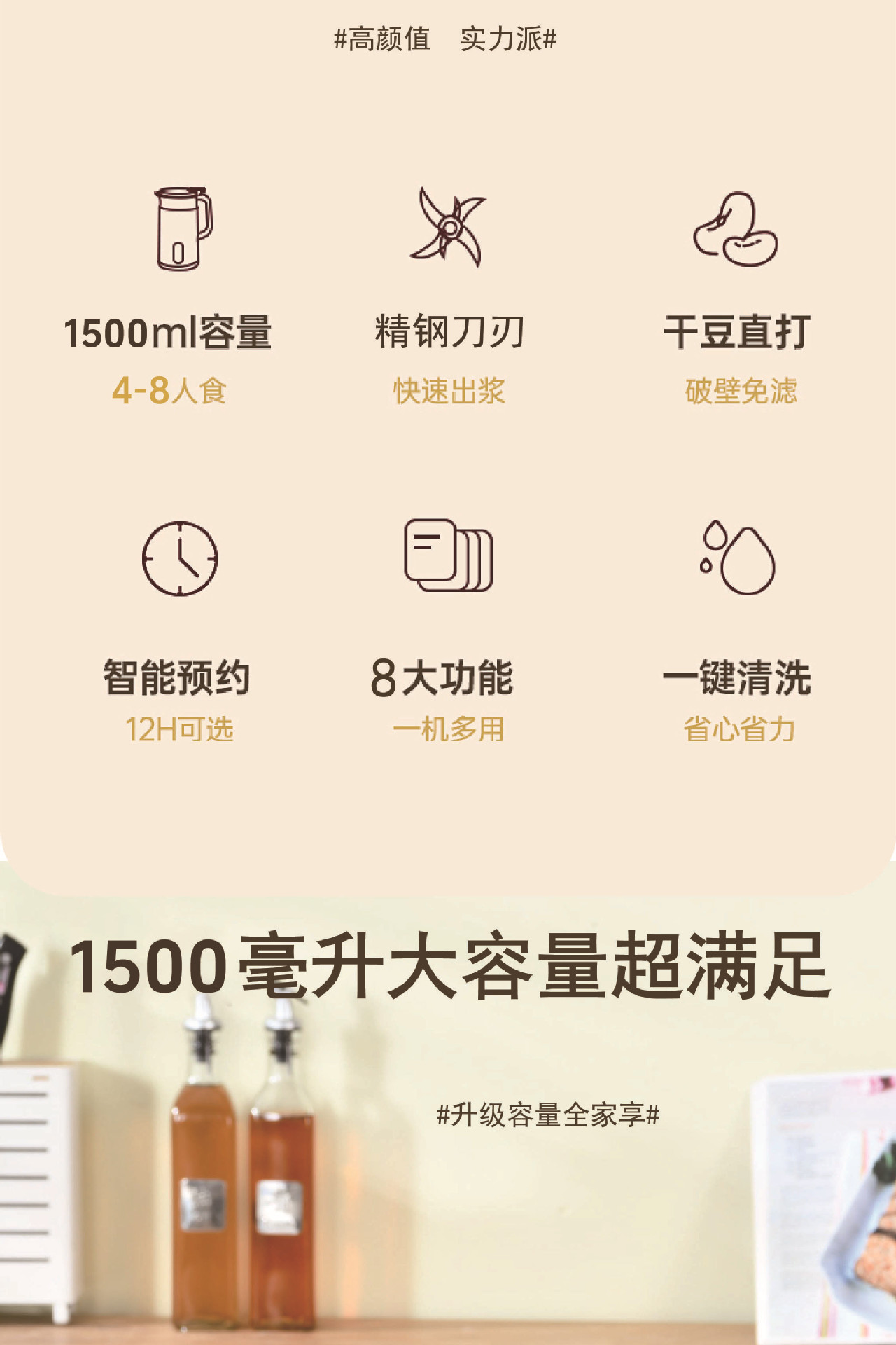 대용량 두유 제조기 1500ml 자동 무소음 분쇄기 찌꺼기 없는 스마트 원터치 세척 파쇄형 두유 제조기