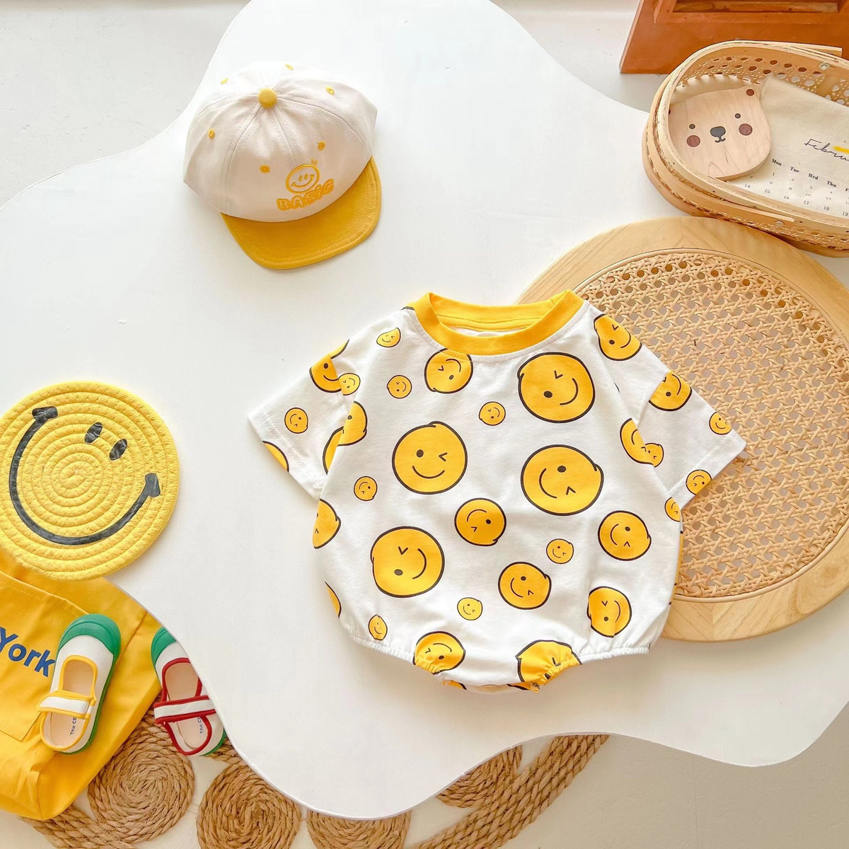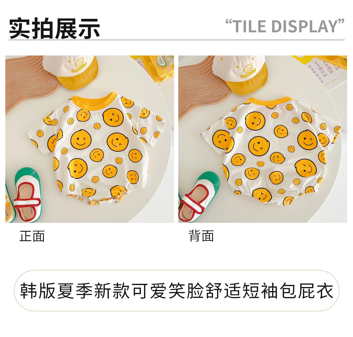 여름 새로운 2025 귀여운 웃는 아기 여름 새 옷 편안한 가방 뚱뚱한 옷 밖으로 나가 만화 하