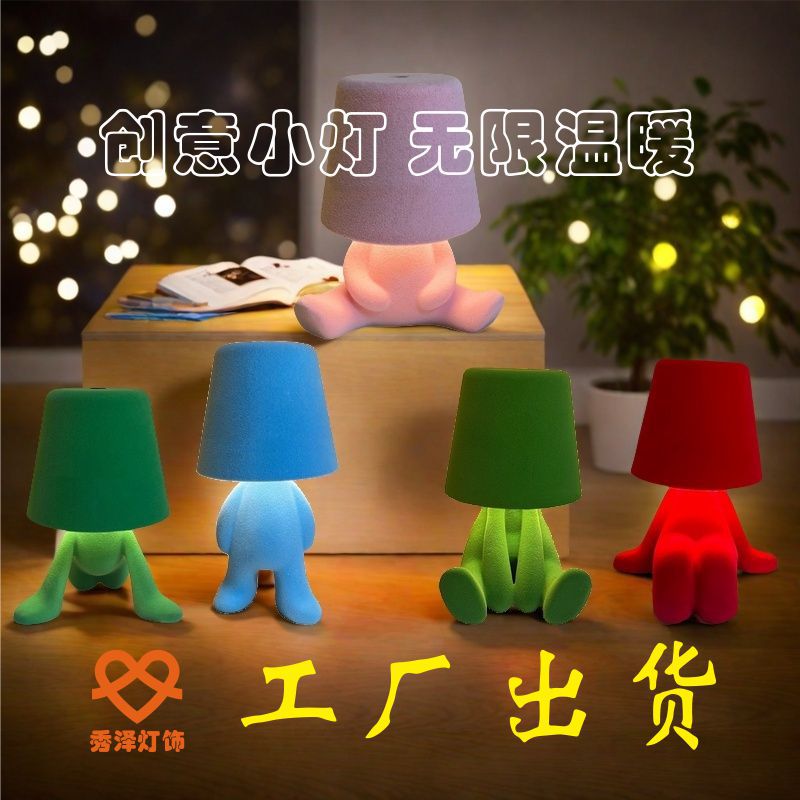 국경 간 사상가 작은 황금 남자 테이블 램프 레스토랑 바 테이블 램프 북유럽 야간 조명 장식품 충전 터치 분위기 램프스토어 가기