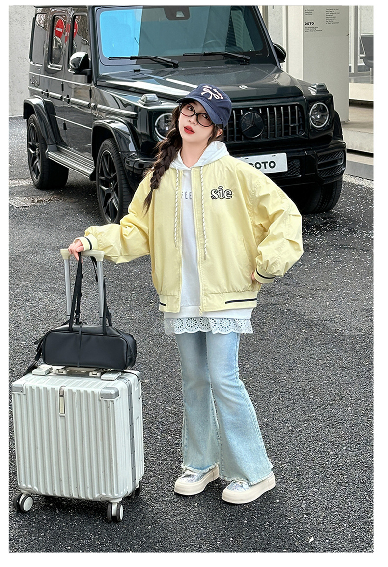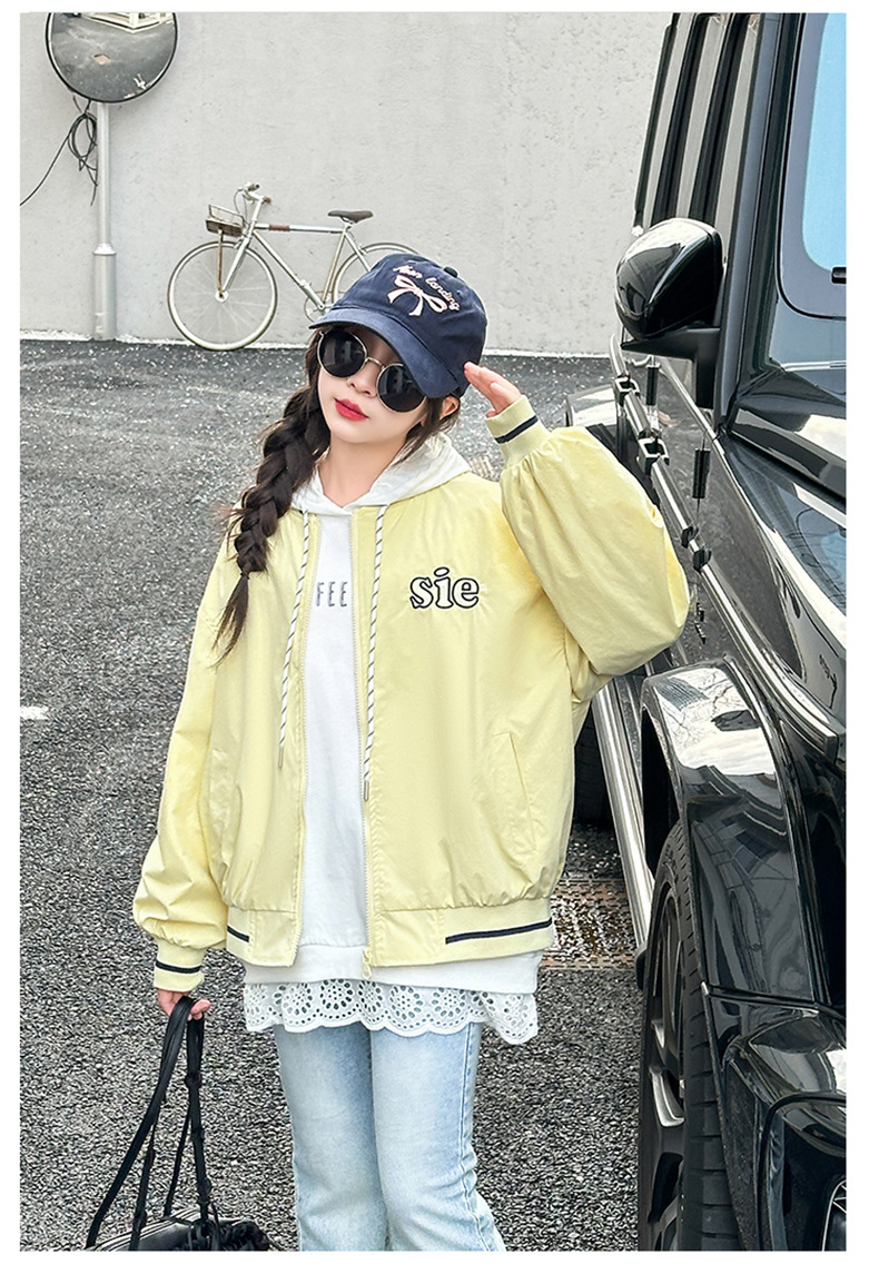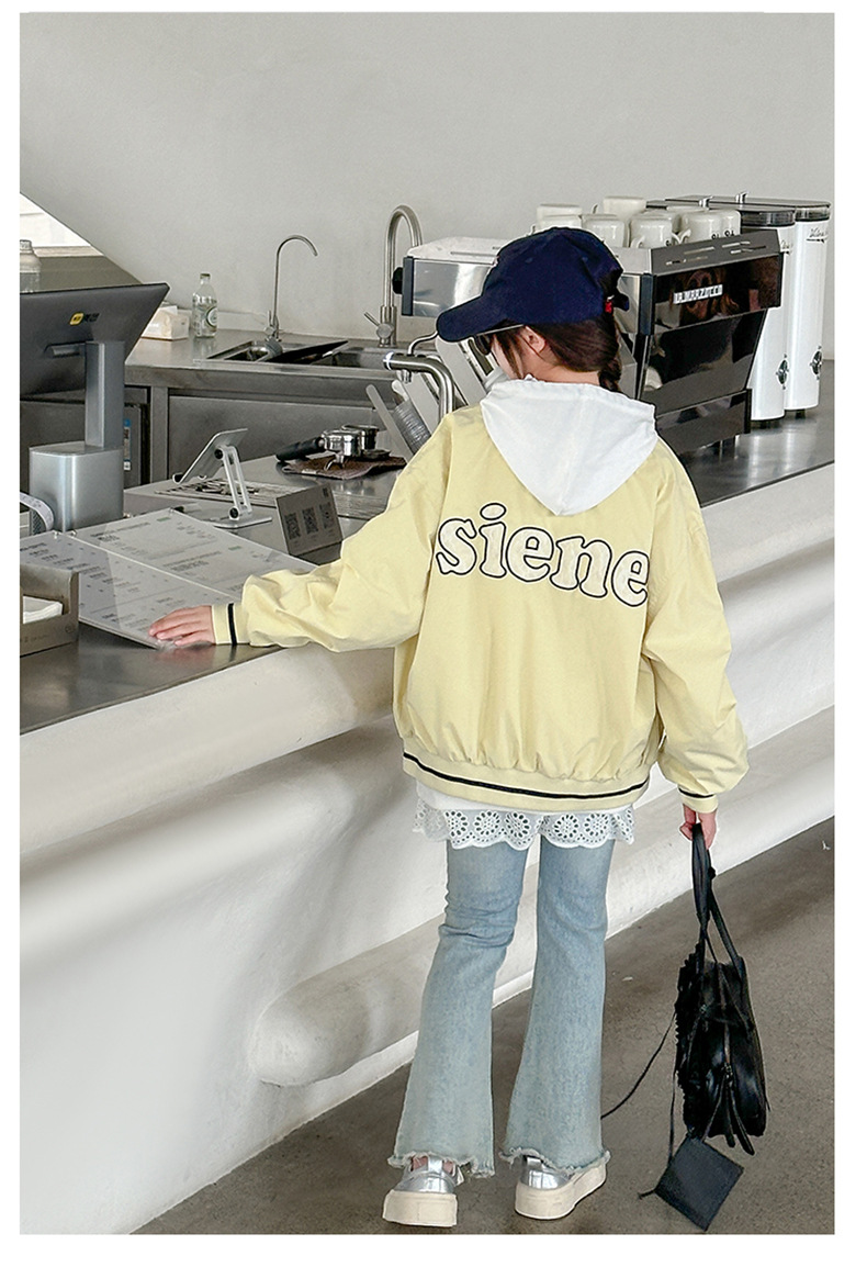 여자 봄 가을 야구 세트 코트 2025 새로운 어린이 소녀 한국 스타일 서양식 재킷 봄 후드 탑스토어 가기