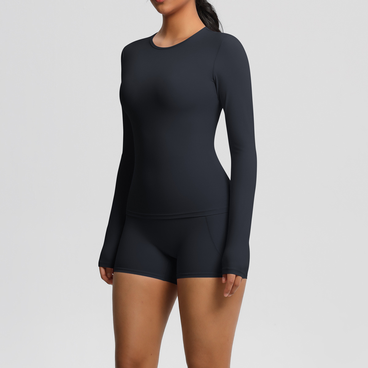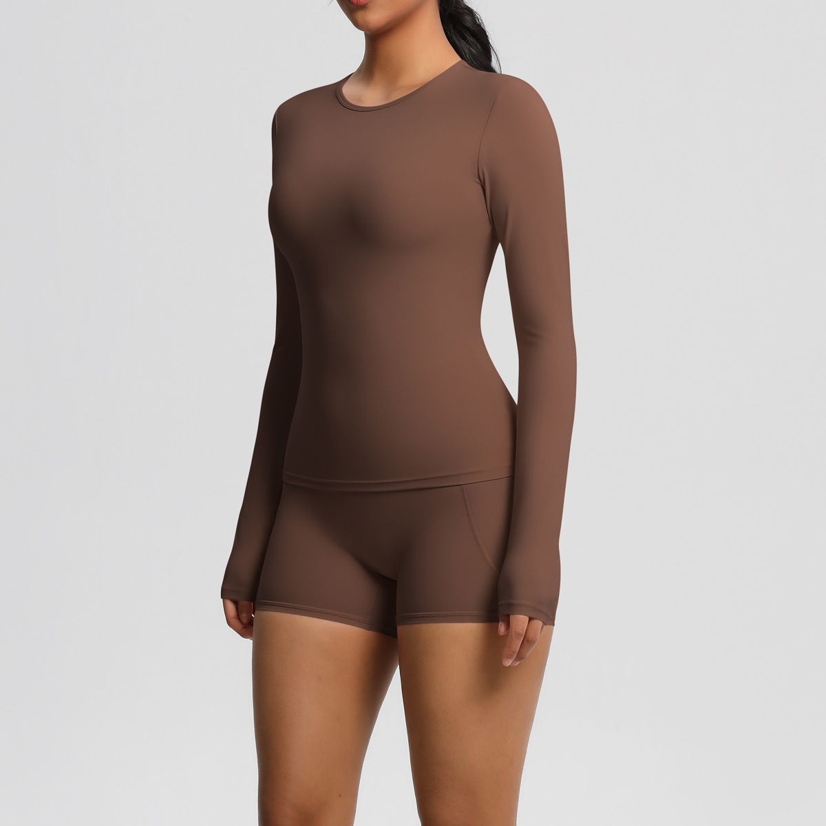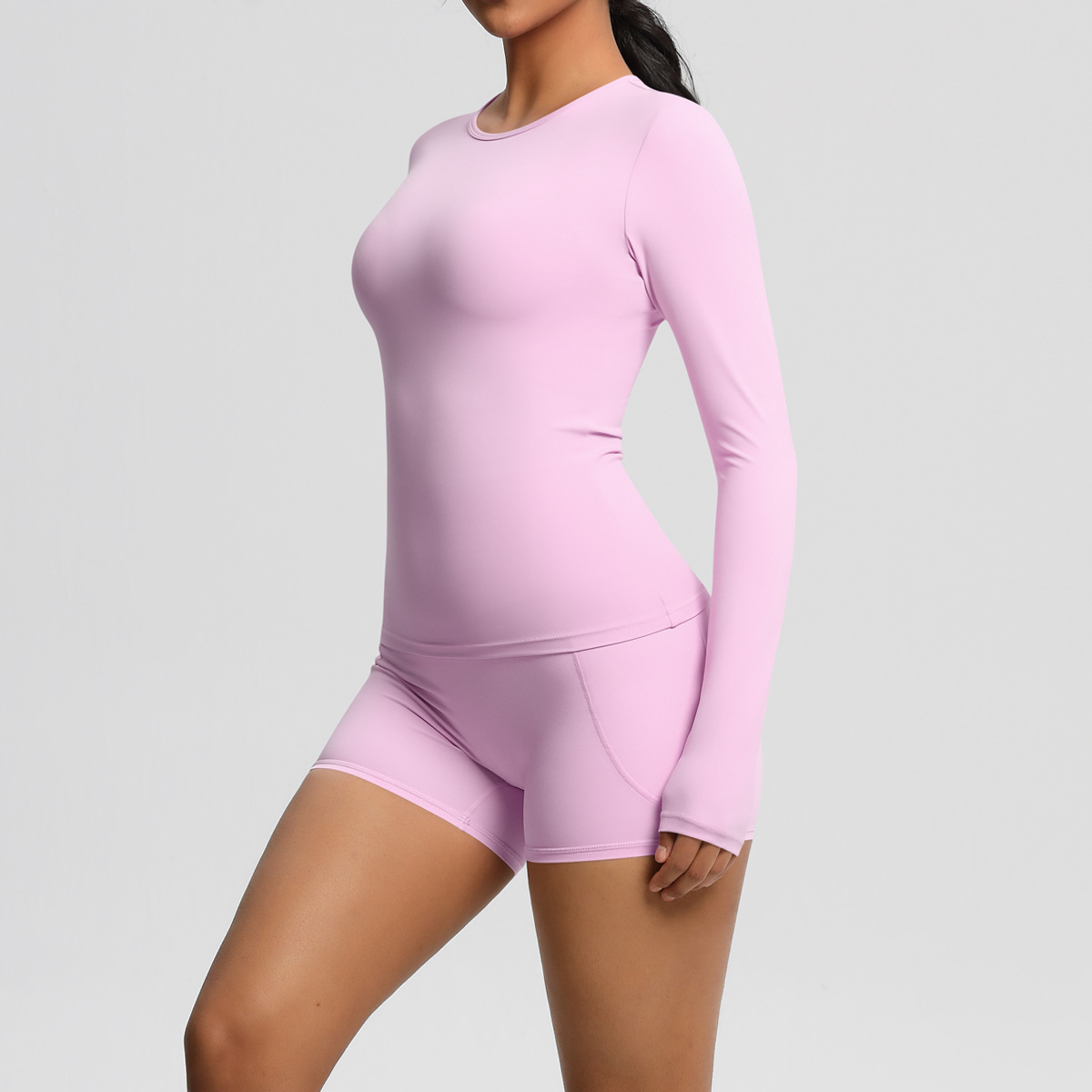 유럽과 미국의 단색 피부 친화적 인 샌딩 타이트 긴팔 요가 의류 세트 스포츠 반바지 달리기 피트니스 의류 투피스 세트