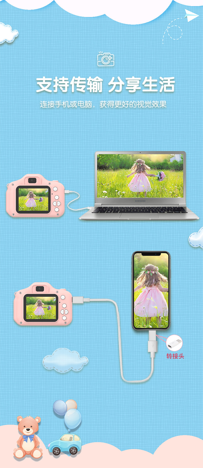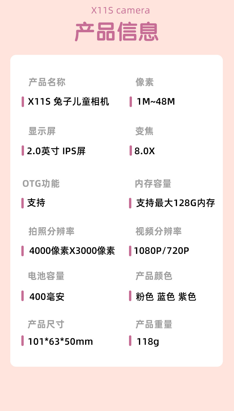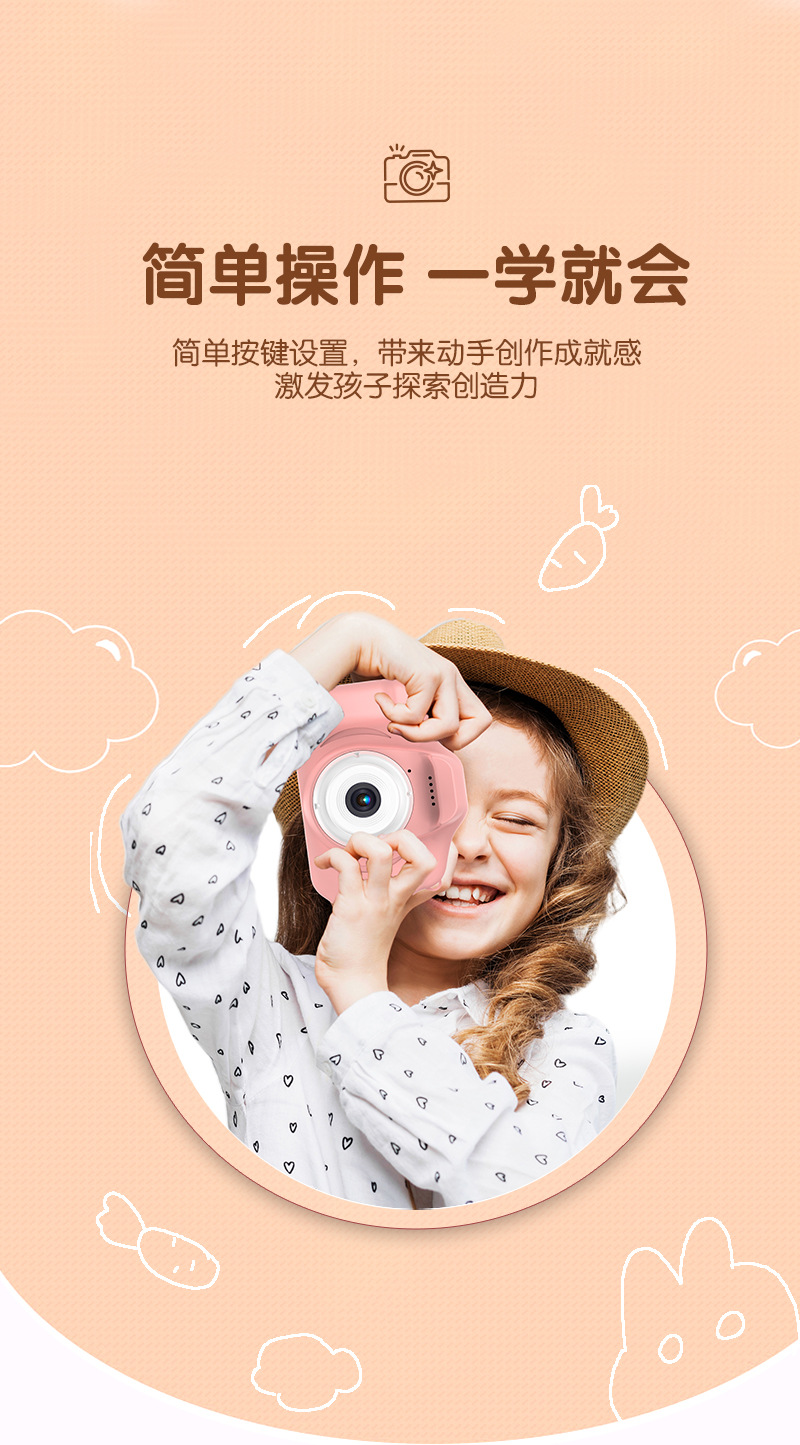 신제품 사진 촬영 가능한 비디오 HD 듀얼 카메라 만화 토끼 낙서 어린이 장난감 디지털 미니 선물 생일스토어 가기