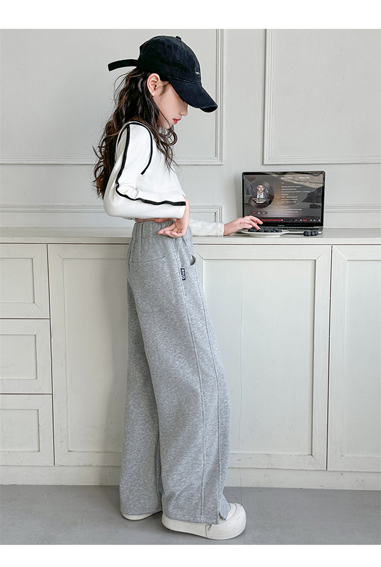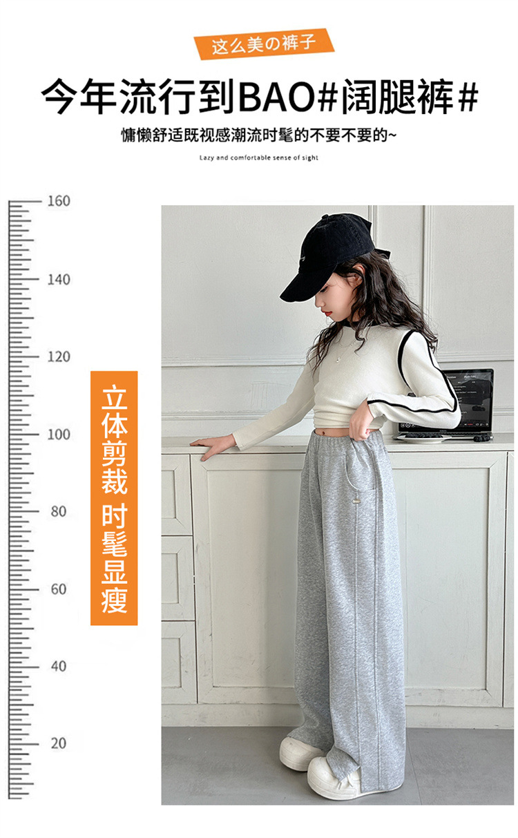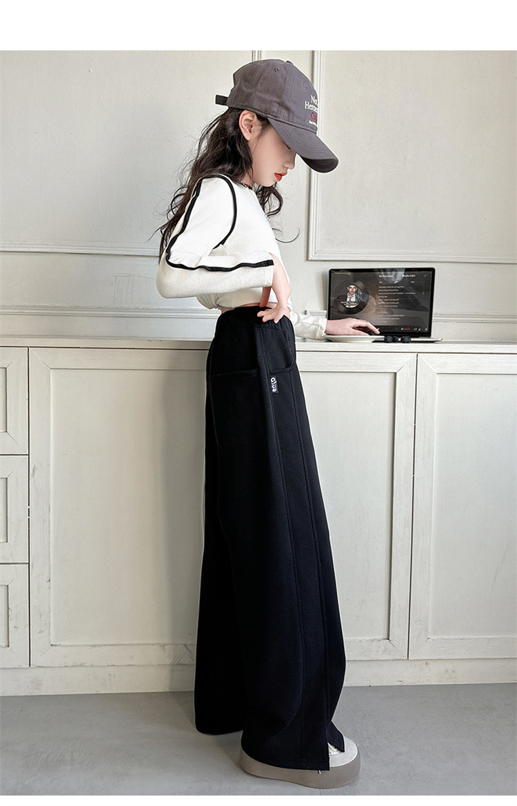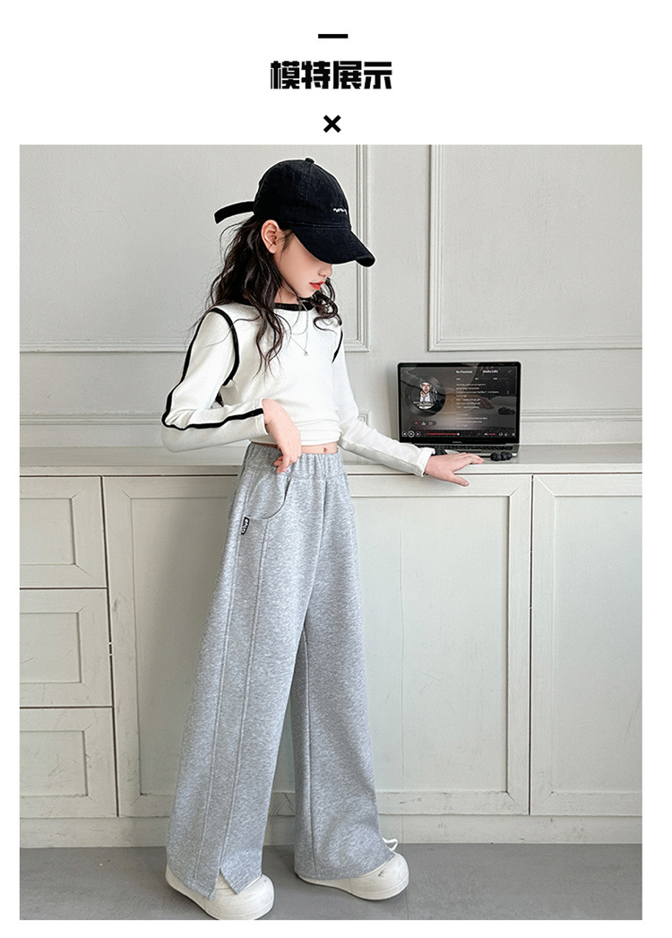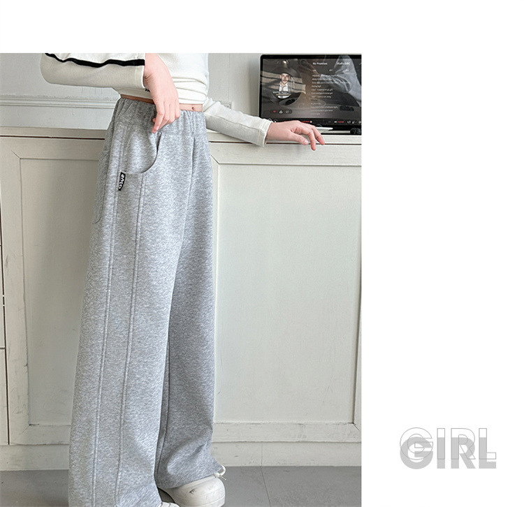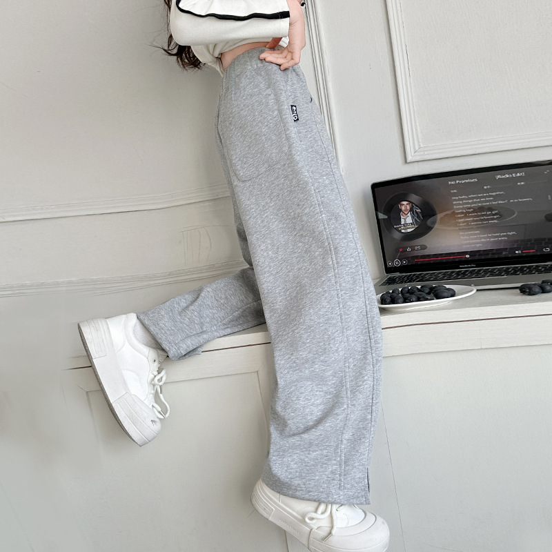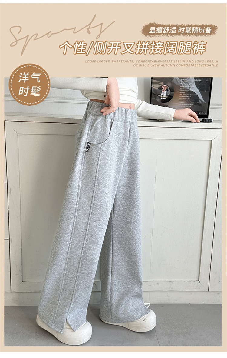 소녀의 넓은 다리 운동복 2025 새로운 어린이 분할 솔리드 컬러 느슨한 스트레이트 레그 스포츠 바지 대형 어린이 서양식 바지스토어 가기