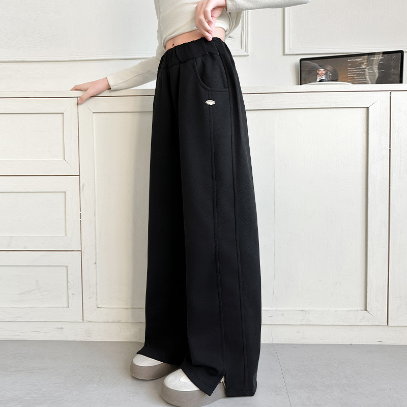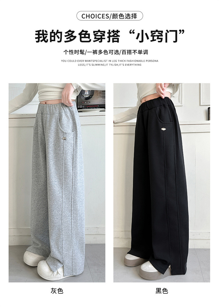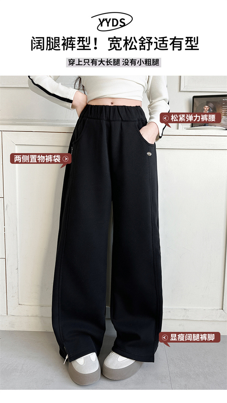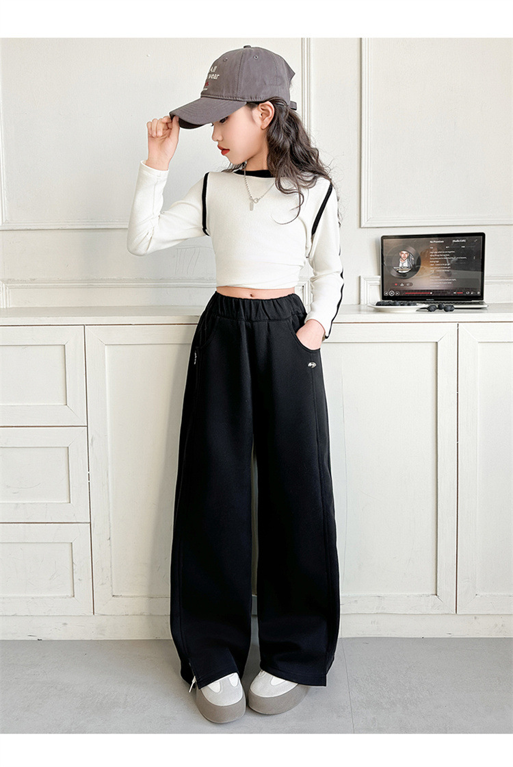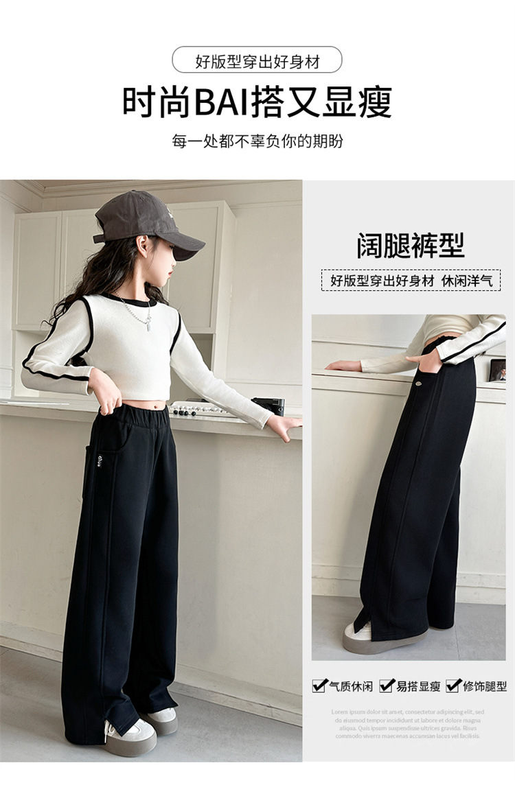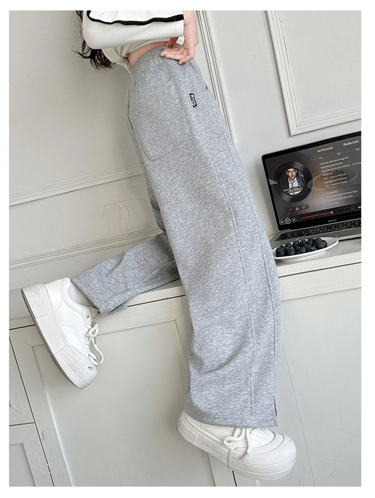 소녀의 넓은 다리 운동복 2025 새로운 어린이 분할 솔리드 컬러 느슨한 스트레이트 레그 스포츠 바지 대형 어린이 서양식 바지스토어 가기
