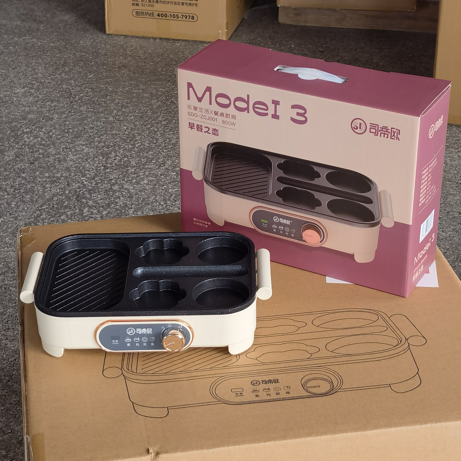 공장 직접 아침 식사 기계 가정용 작은 샌드위치 기계 와플 그림 분할 압력 베이킹 올인원 아침 식사 기계스토어 가기