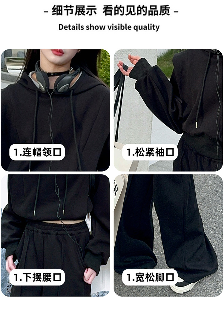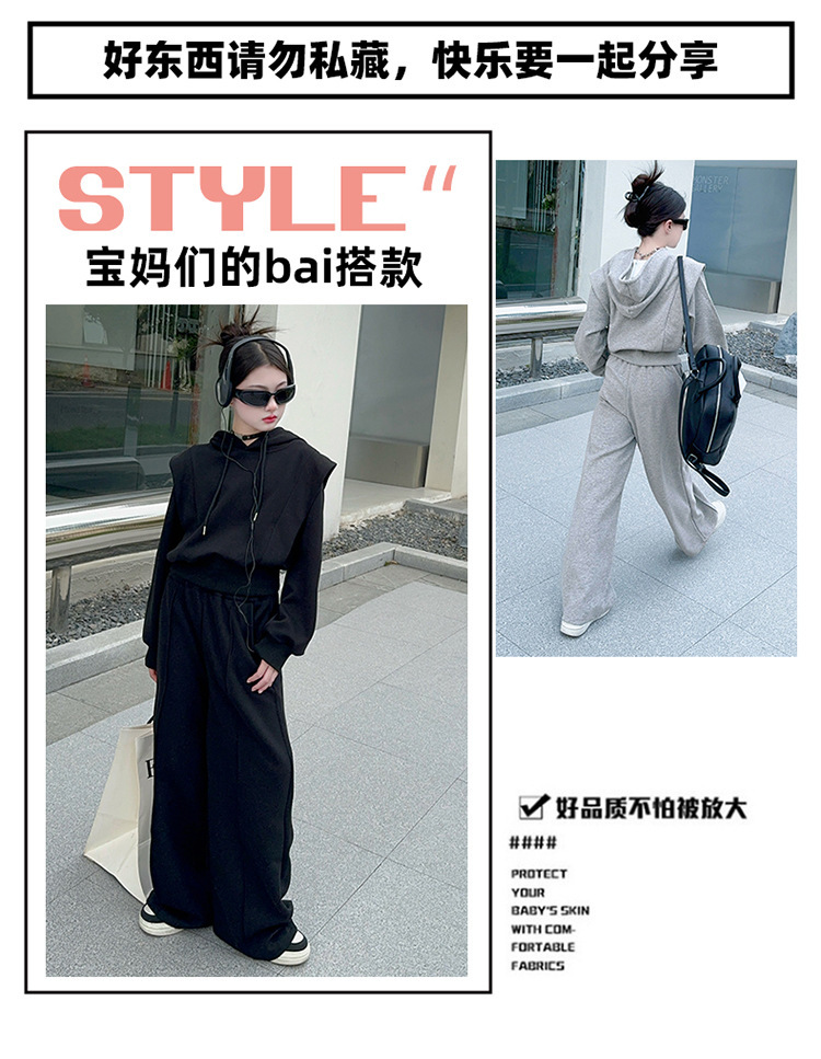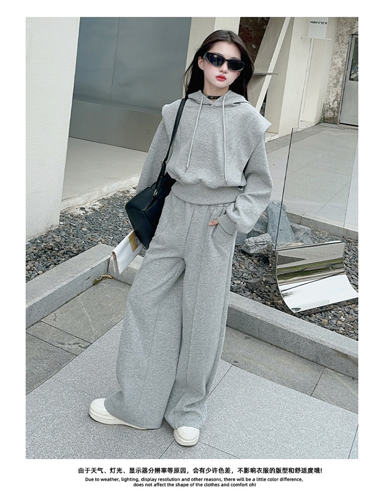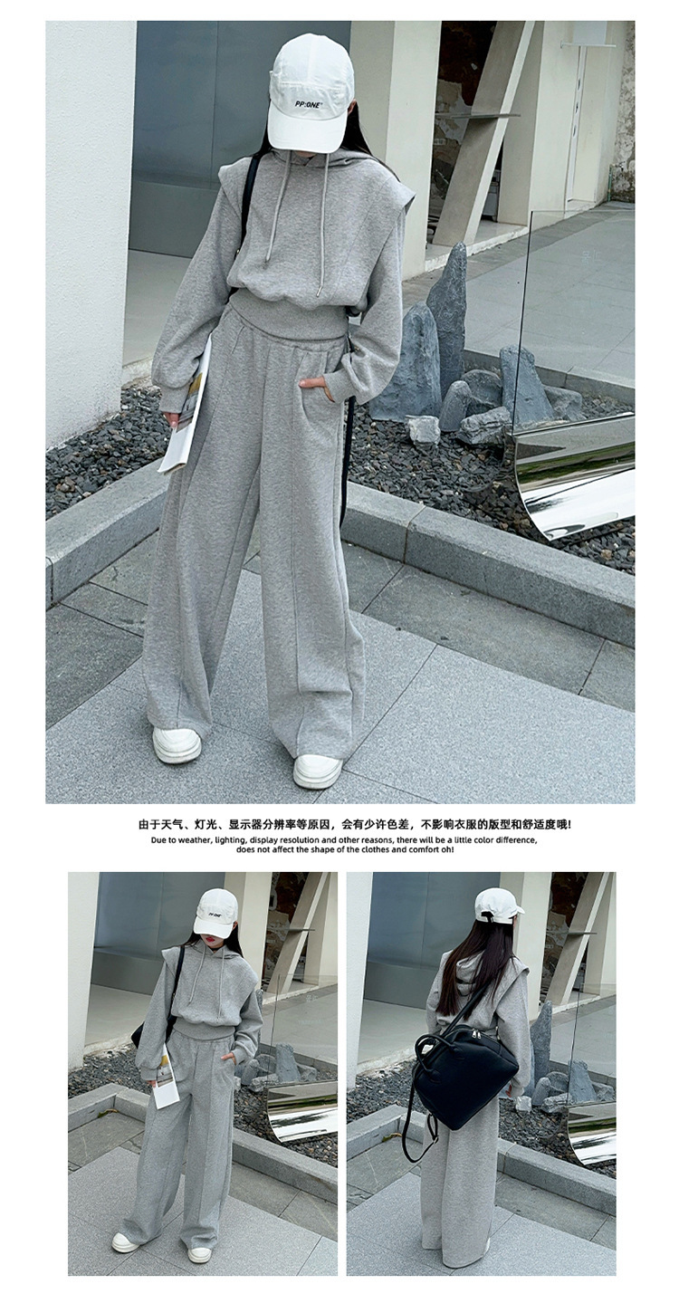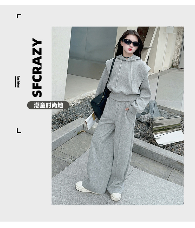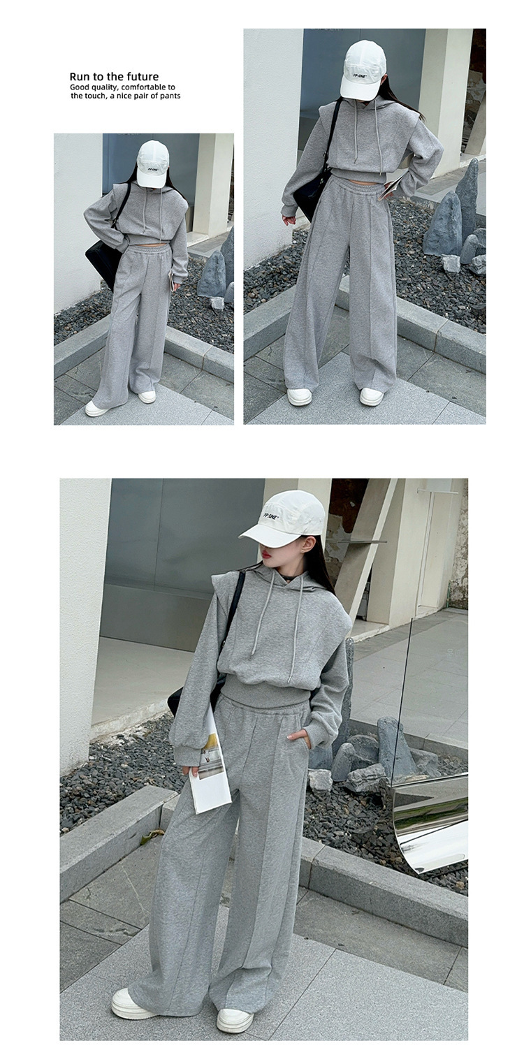 소녀 2024 패션 스포츠 세트 느슨한 슬리밍 짧은 후드 스웨트 재킷 높은 허리 넓은 다리 바지 세트스토어 가기