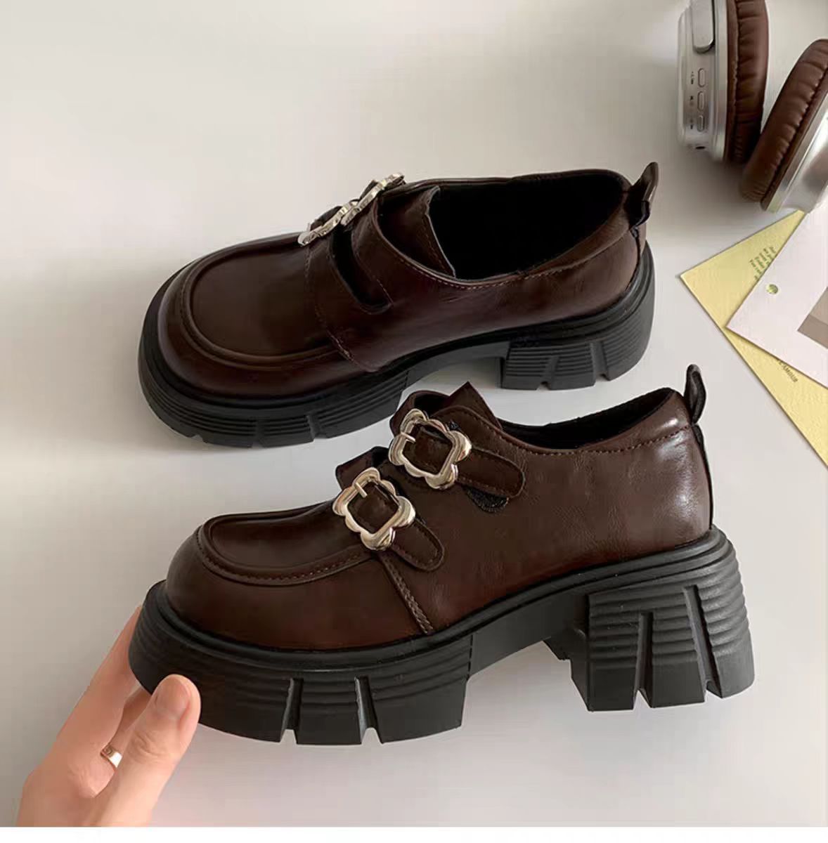 패션 우아한 블랙 레트로 두꺼운 단일 높이 증가 작은 가죽 신발 여성의 2024 새로운 가을과 겨울 따뜻한 메리 제인 코튼 신발스토어 가기