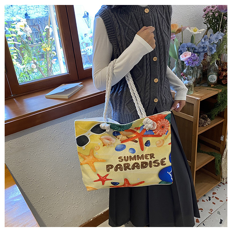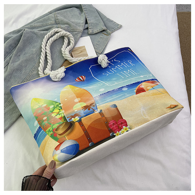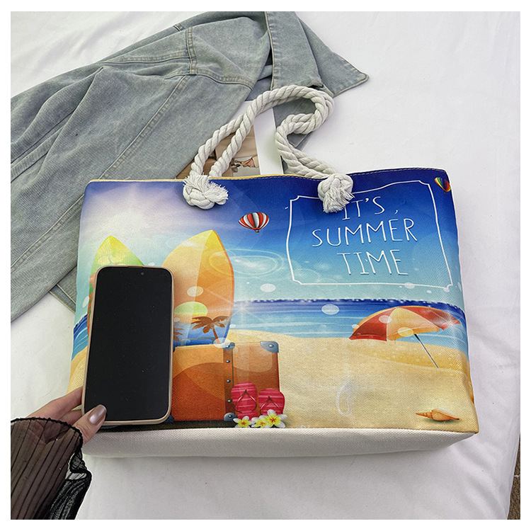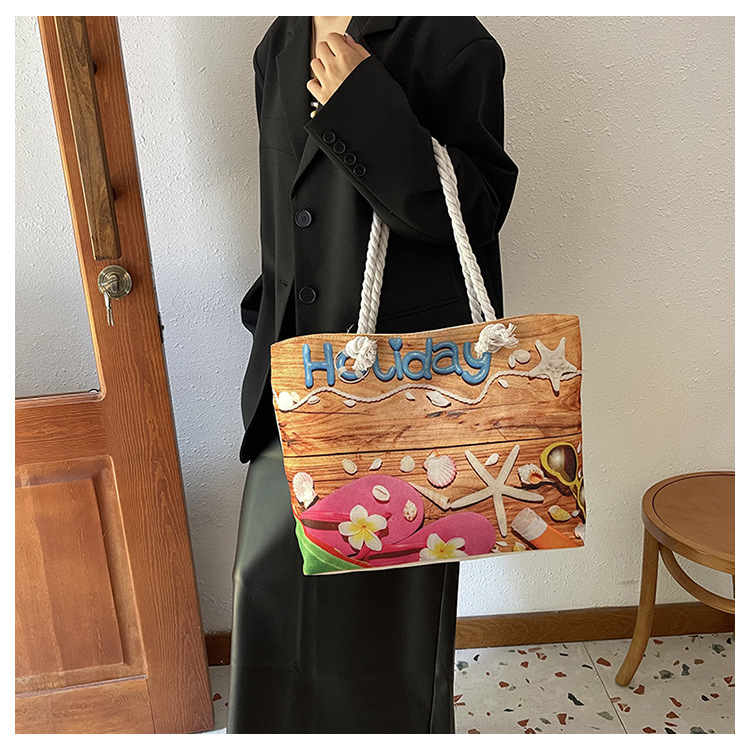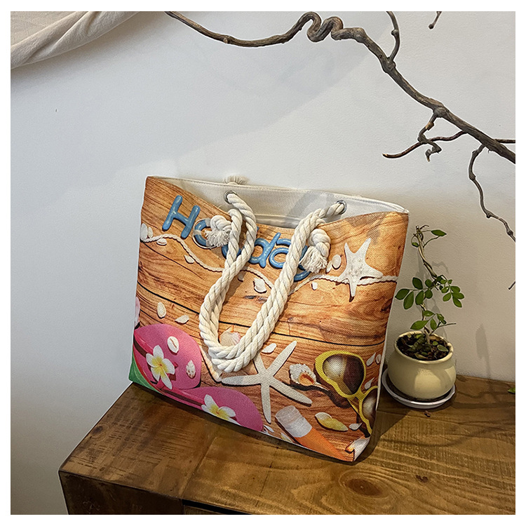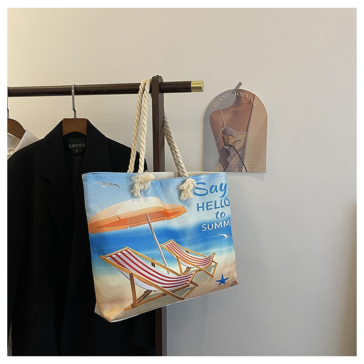 대형 토트 여성용 가방 2025 새로운 해변 해변 가방 싱글 숄더 여성용 가방 리넨 두꺼운 캔버스 패션 캐주얼 핸드백