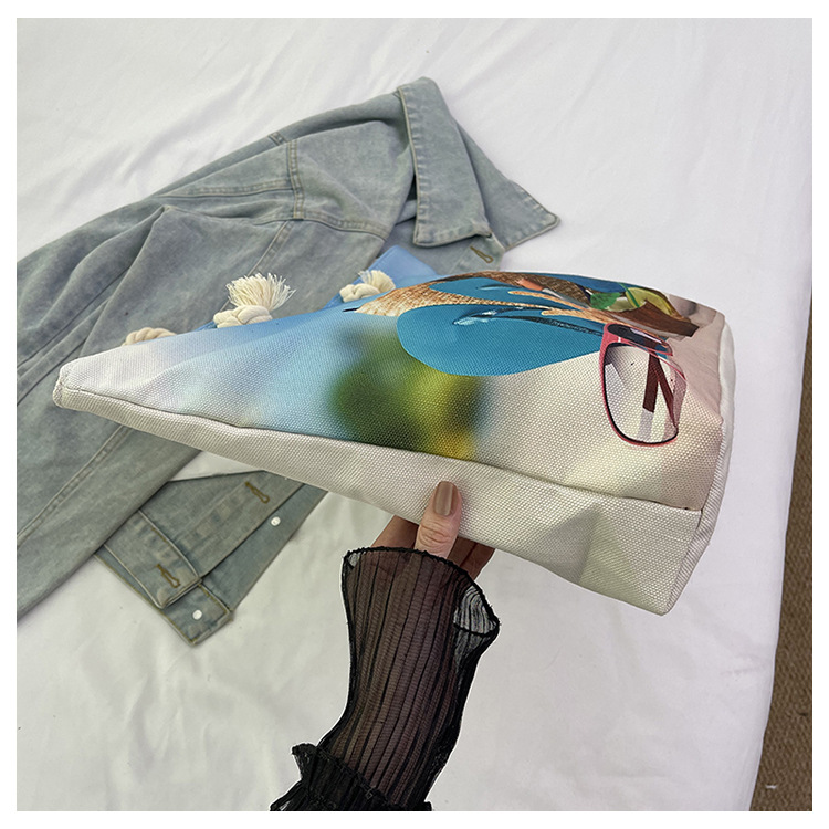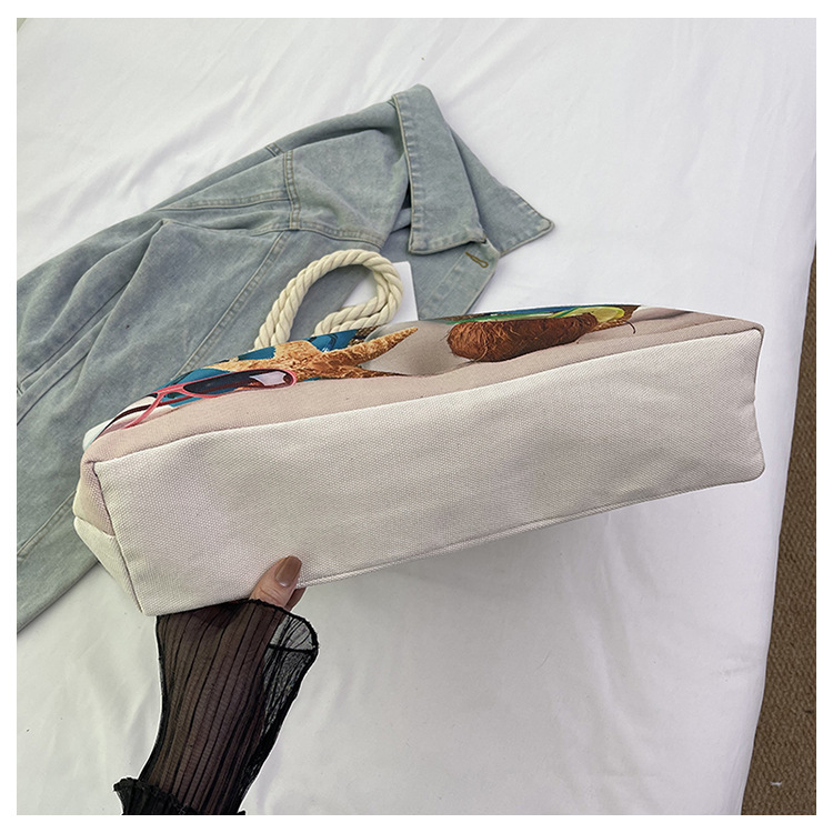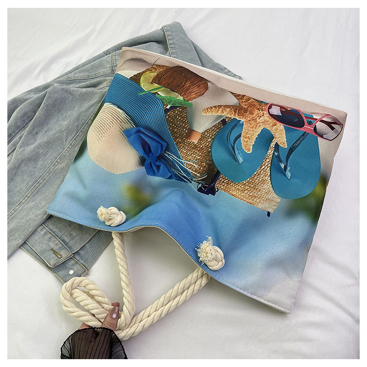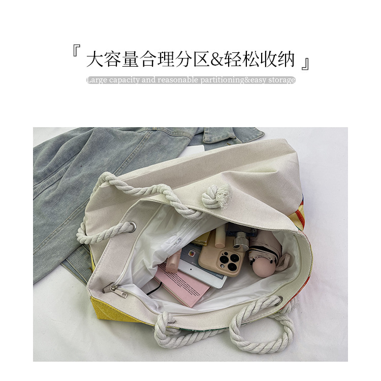 대형 토트 여성용 가방 2025 새로운 해변 해변 가방 싱글 숄더 여성용 가방 리넨 두꺼운 캔버스 패션 캐주얼 핸드백스토어 가기