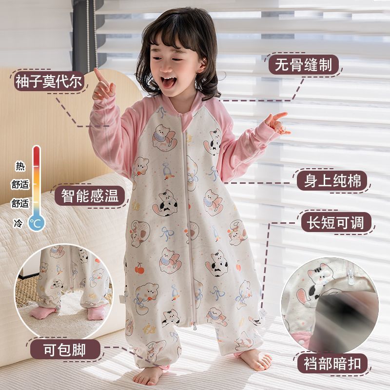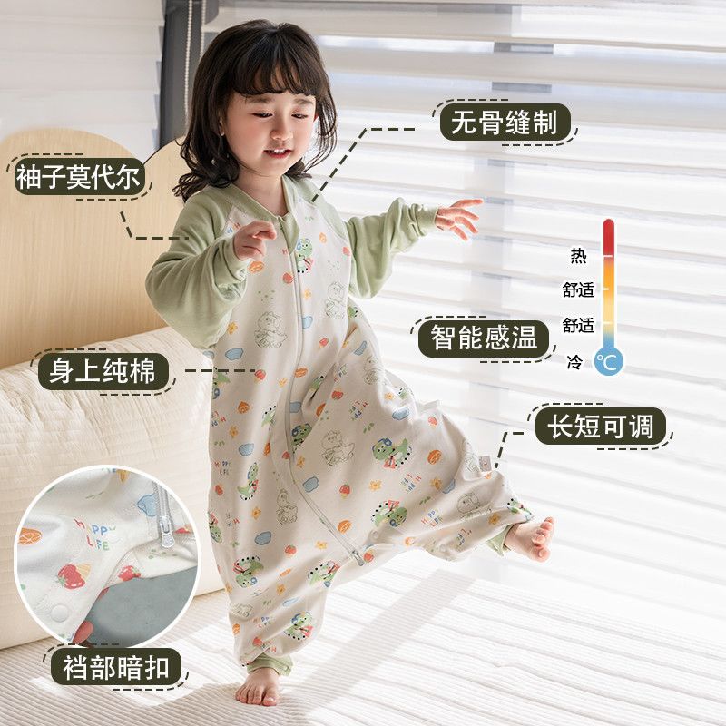 AEgtesol 어린이 더블 레이어 퓨어 코튼 슬리핑 백 아기의 봄과 여름 따뜻한 아기의 집 분할 다리 킥 방지 퀼트스토어 가기