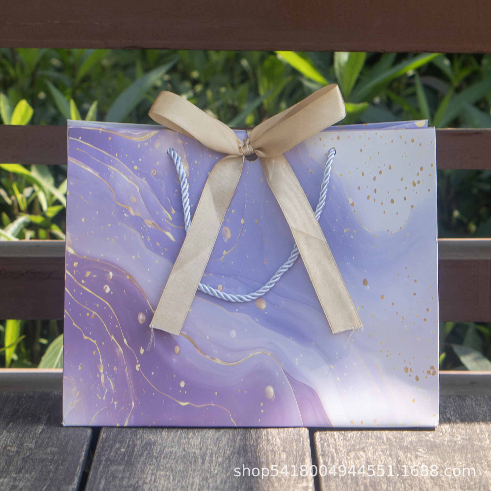 • 보라색 금박 선물 가방, 흰색 카드, 중간 크기 25*12*20CM