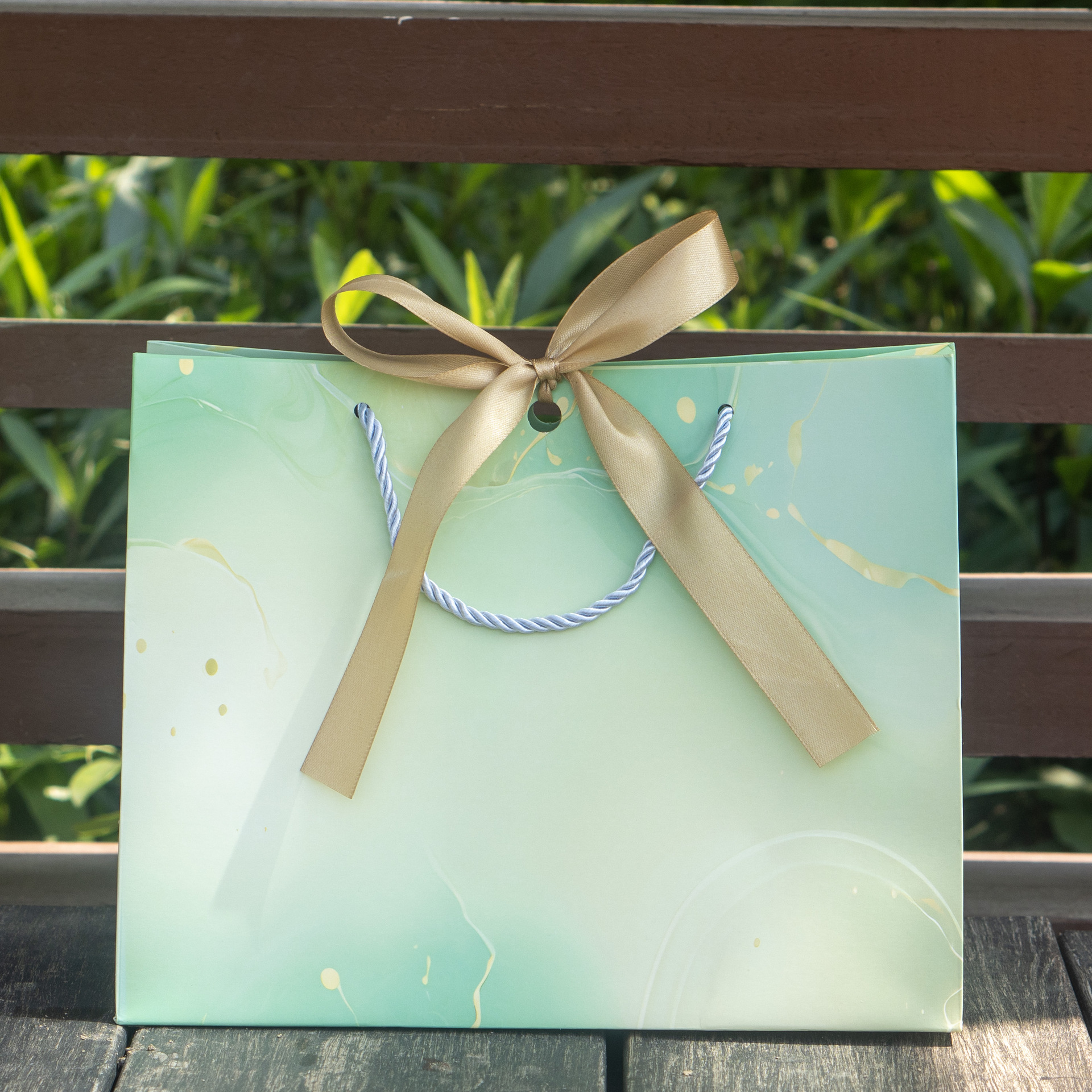 • 청록색 금박 선물 가방, 흰색 카드, 중간 크기 25*12*20CM