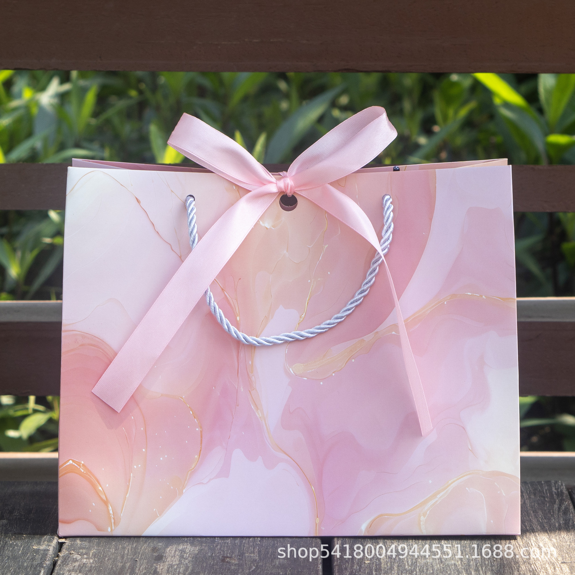 • 핑크 금박 선물 가방, 흰색 카드, 중간 크기 25*12*20CM