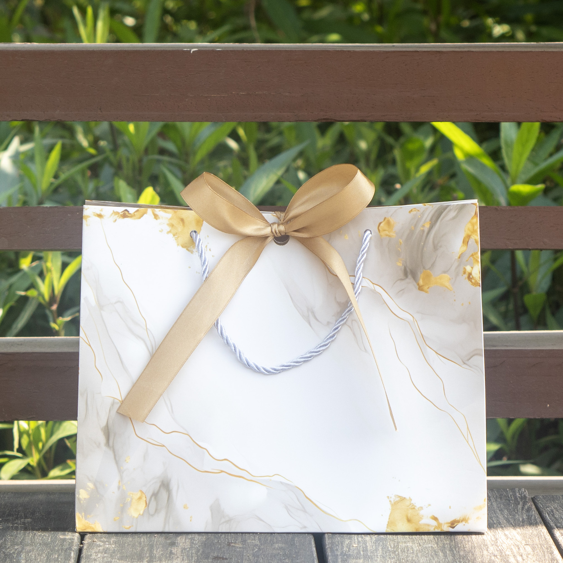 • 흰색 금박 선물 가방, 흰색 카드, 중간 크기 25*12*20CM