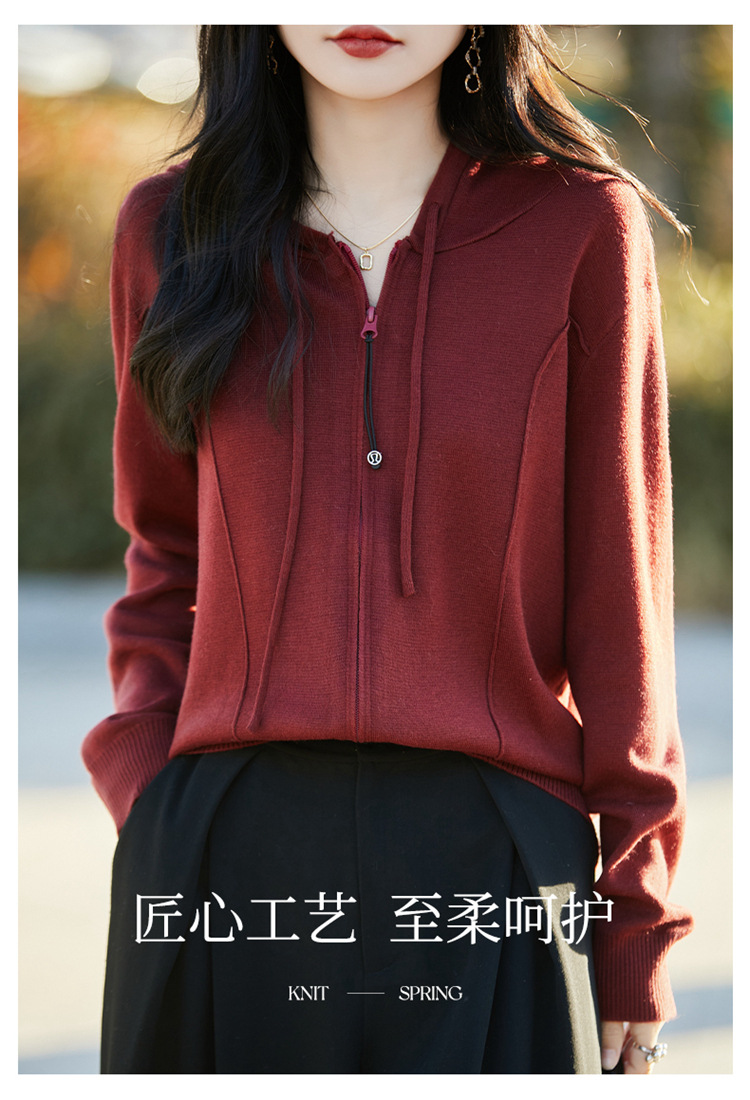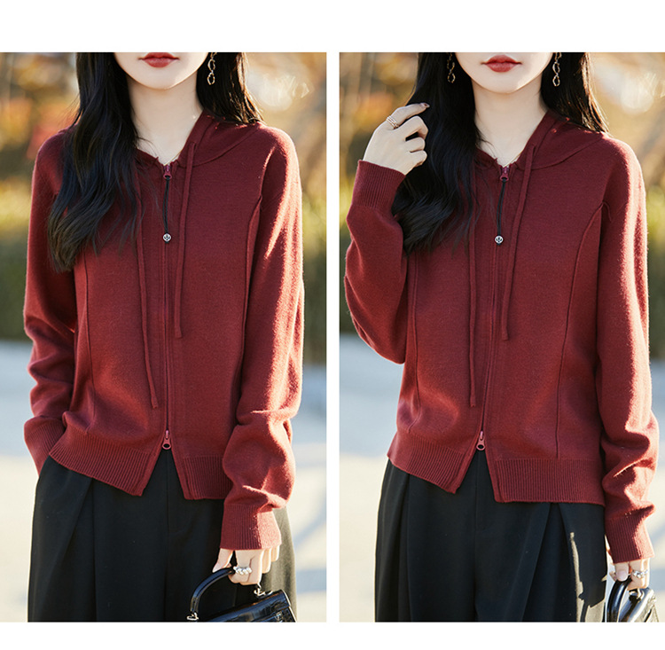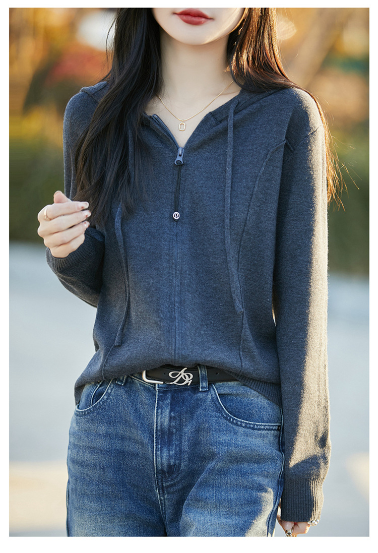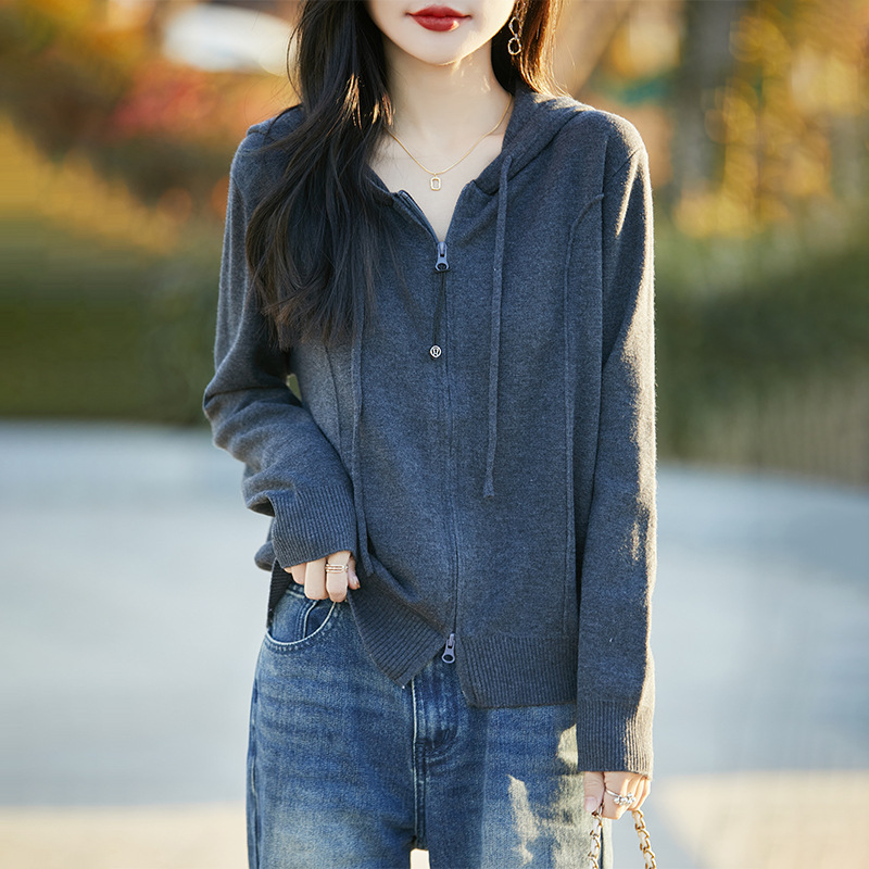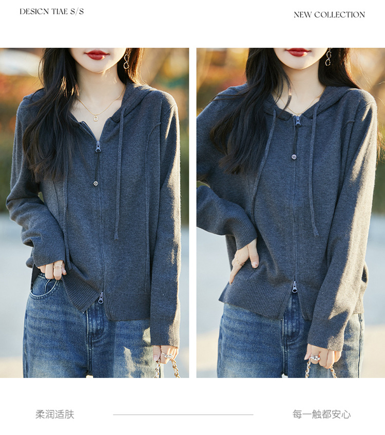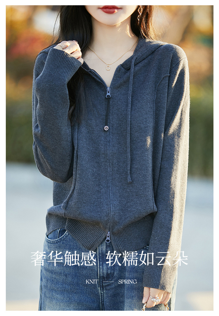 패션 카디건 스웨터 코트 여성의 2025 년 봄과 가을 새로운 지퍼 스웨터 후드 스웨터 후드 카디건 탑스토어 가기