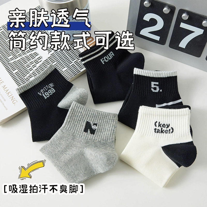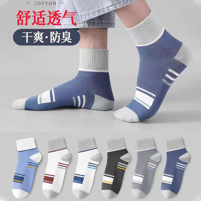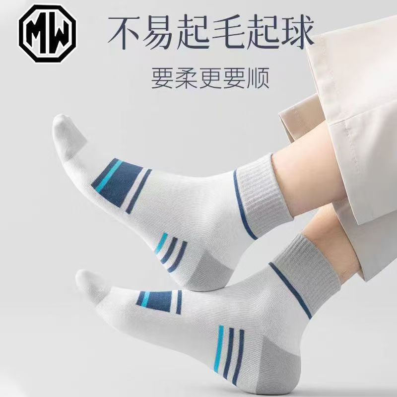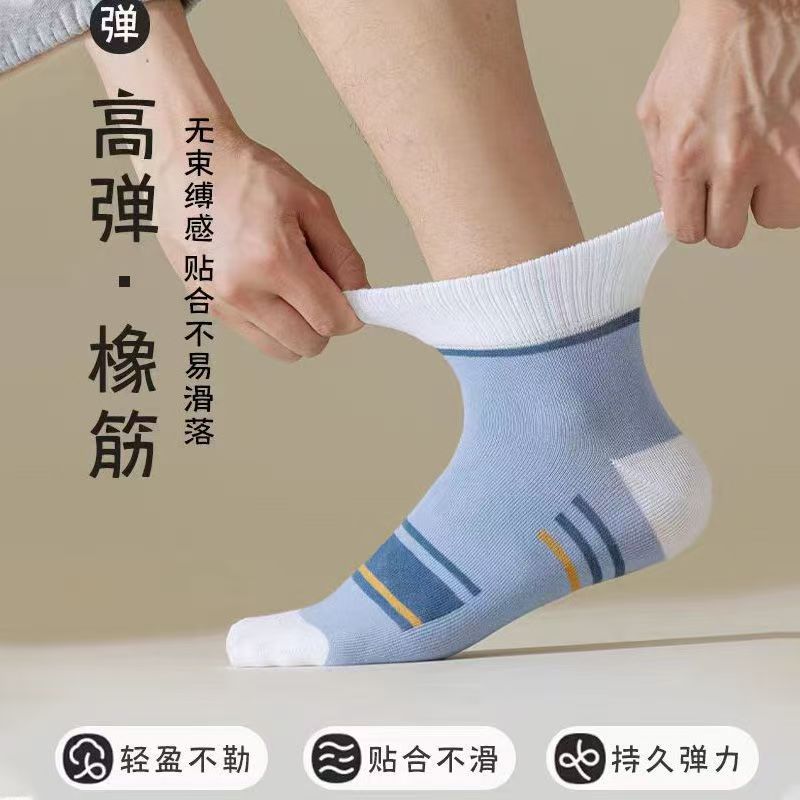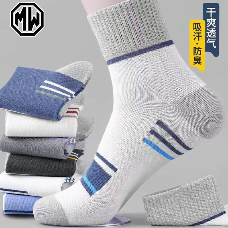 Zhuji 양말 남성 여름 얇은 3 바 통기성 땀 흡수 중간 튜브 양말 여름 유행 스포츠 양말 도매스토어 가기