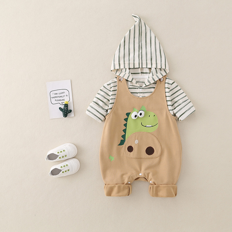 아기 소녀 슈퍼 귀여운 세트 가을 한국 스타일 아기 귀여운 여성 작업복 스트라이프 베이스 셔츠 투피스 세트스토어 가기