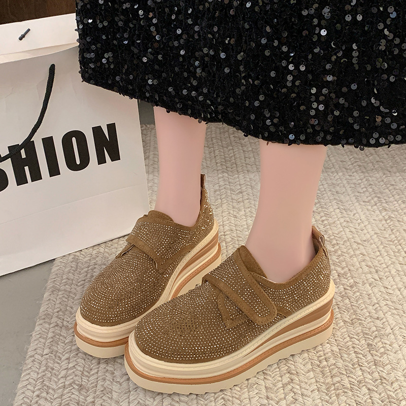프로스트 가죽 여성 신발 플랫 두꺼운 플랫폼 신발 스타 깊은 입 여성 싱글 신발 새로운 공주 스타일 우아한 유행 신발스토어 가기