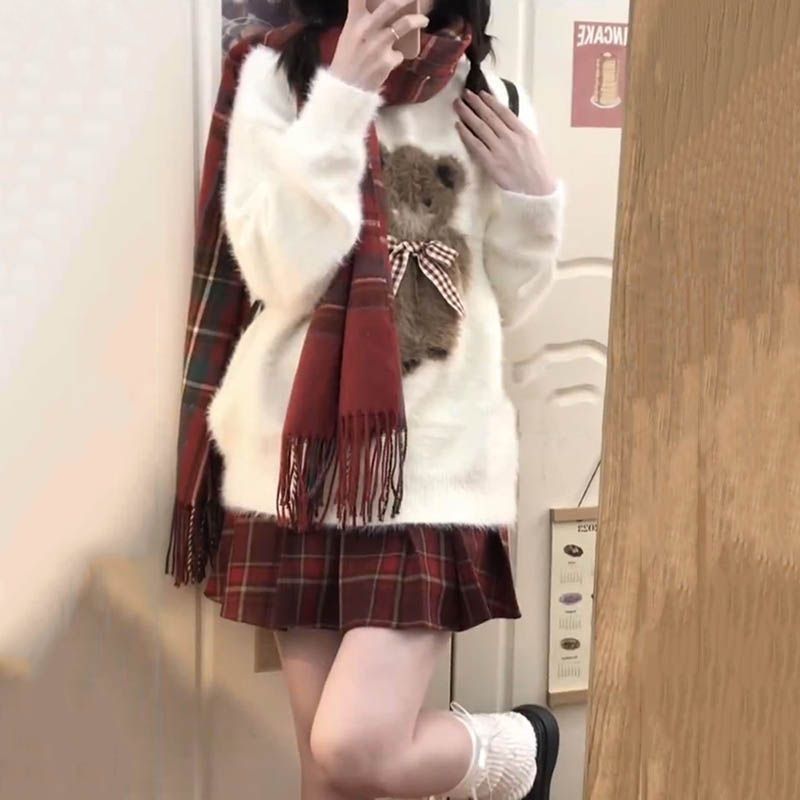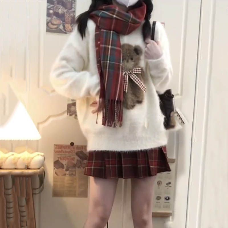 [점포 판매] 달콤한 귀여운 곰 활 스웨터 학생들 가을과 겨울 느슨한 조커 게으른 바람 라운드