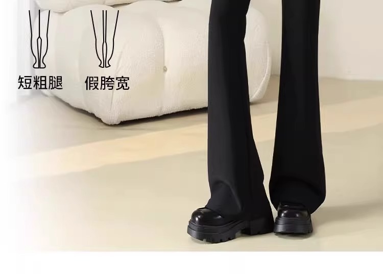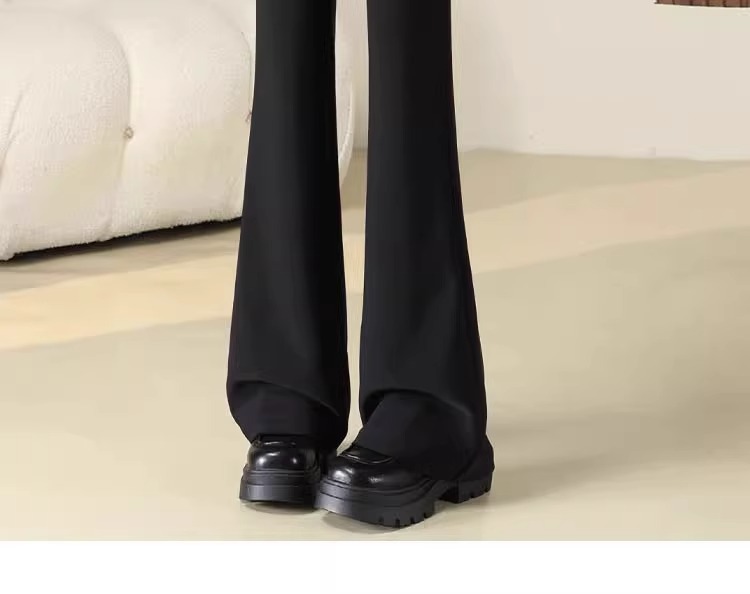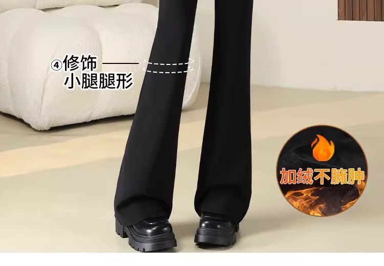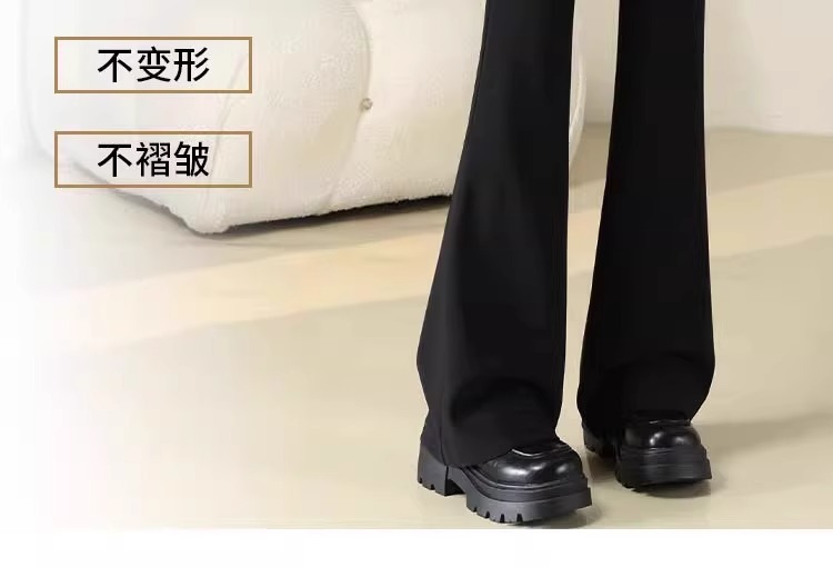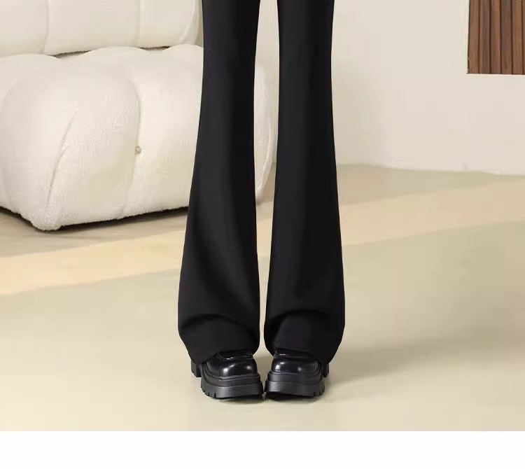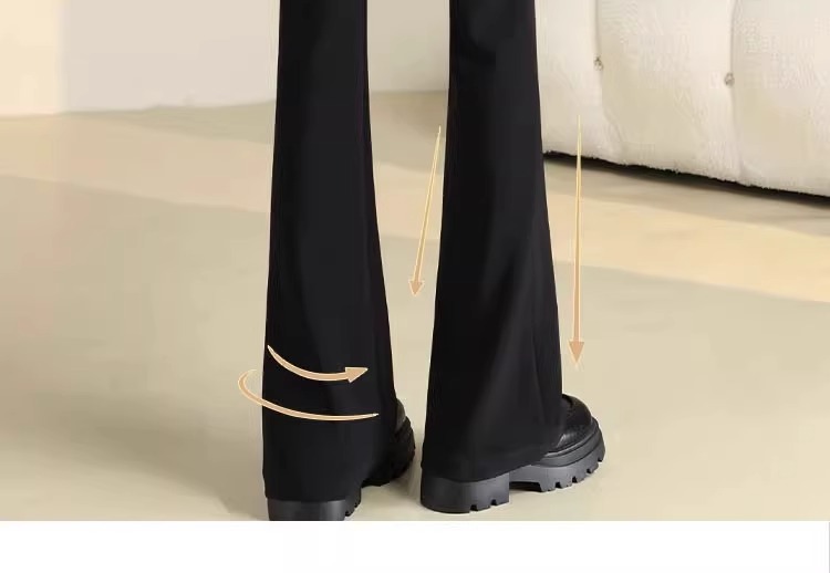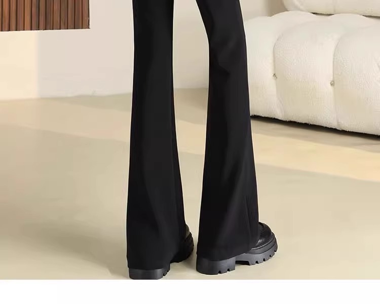 2025 년 봄과 가을을위한 여성용 마이크로 팬츠 새로운 높은 허리 슬림 핏 스트레치 작은 기모 세트 검은 플레어 바지스토어 가기