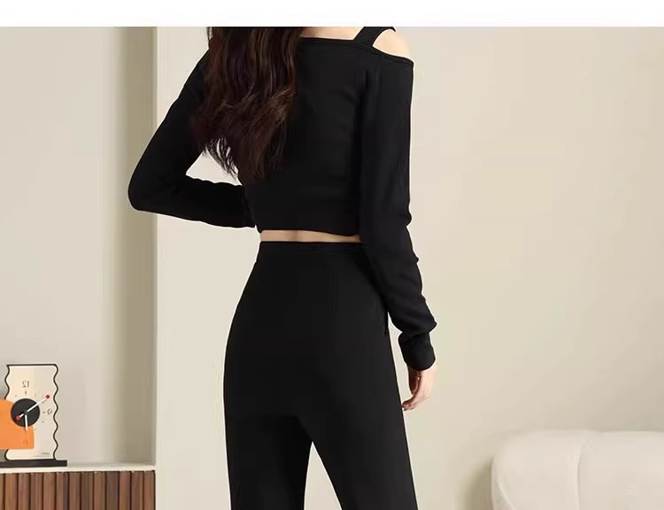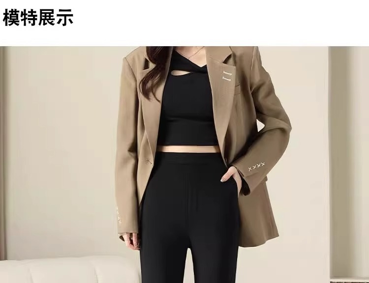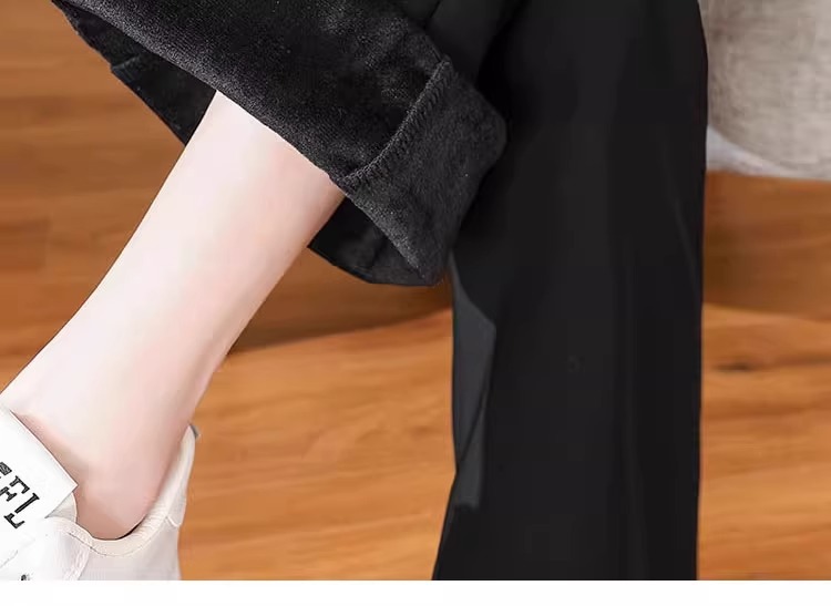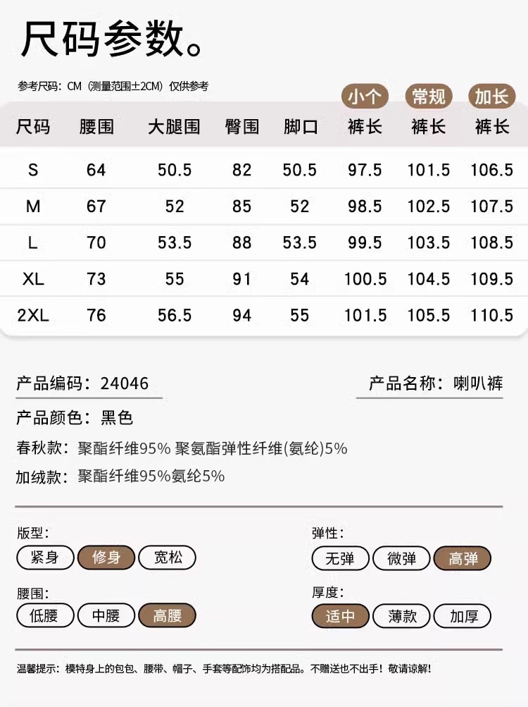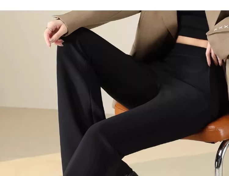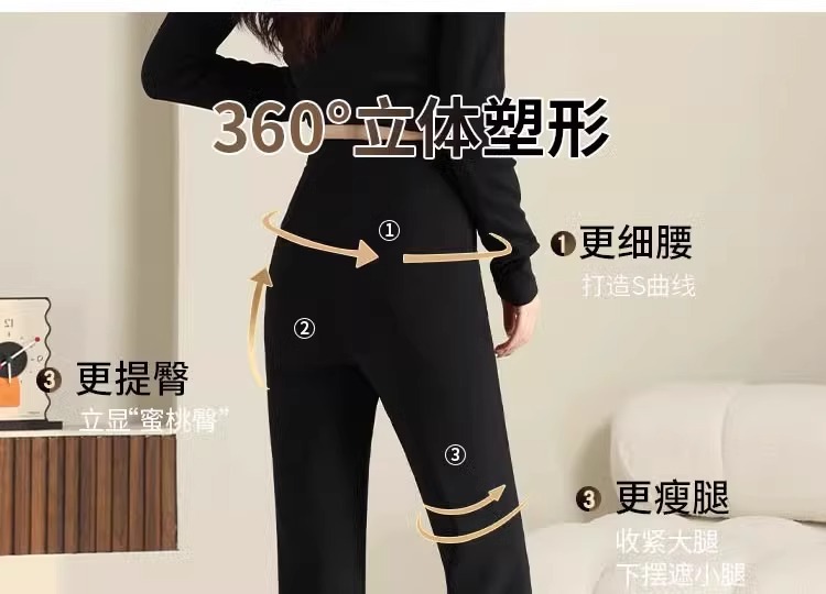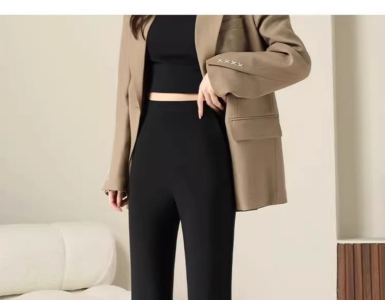 2025 년 봄과 가을을위한 여성용 마이크로 팬츠 새로운 높은 허리 슬림 핏 스트레치 작은 기모 세트 검은 플레어 바지스토어 가기