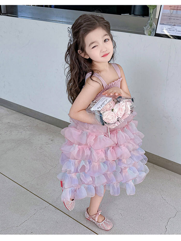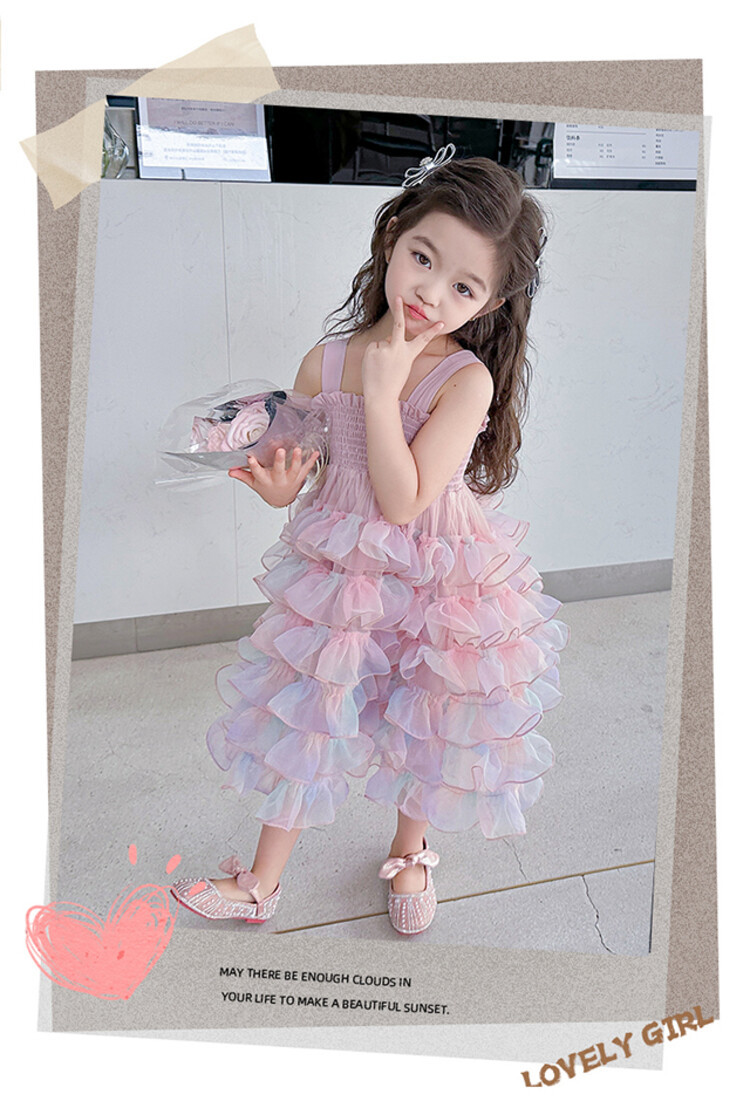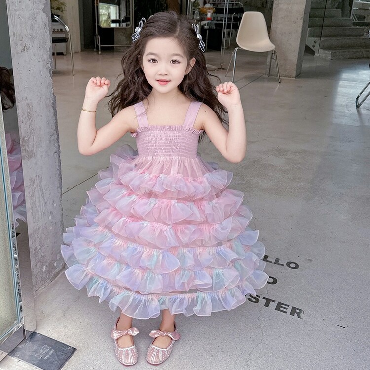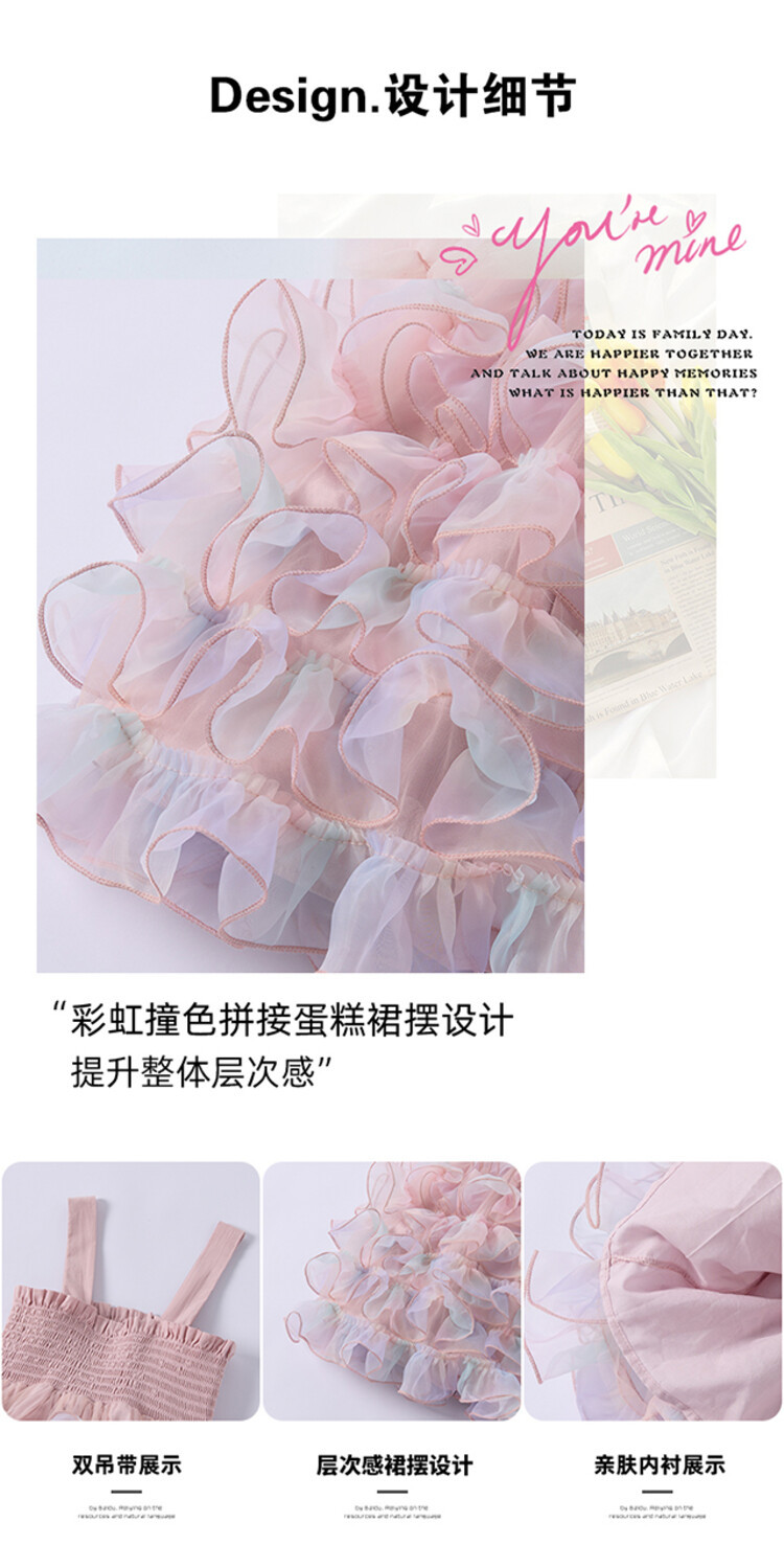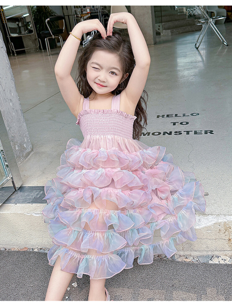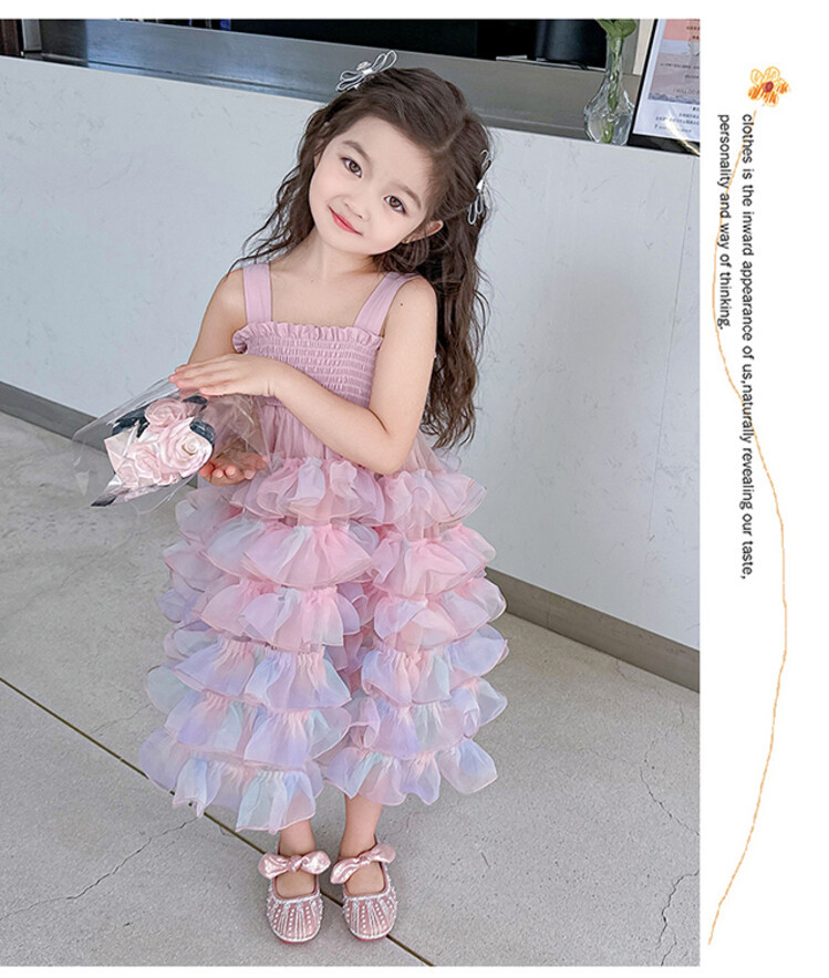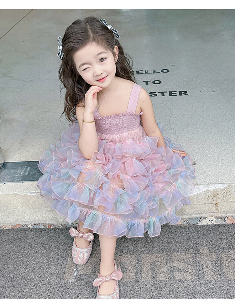 여자 원피스 2025 새로운 도착 레인보우 슬링 원피스 여름 웨스턴 스타일 공주 스커트 판초 베일 스커트