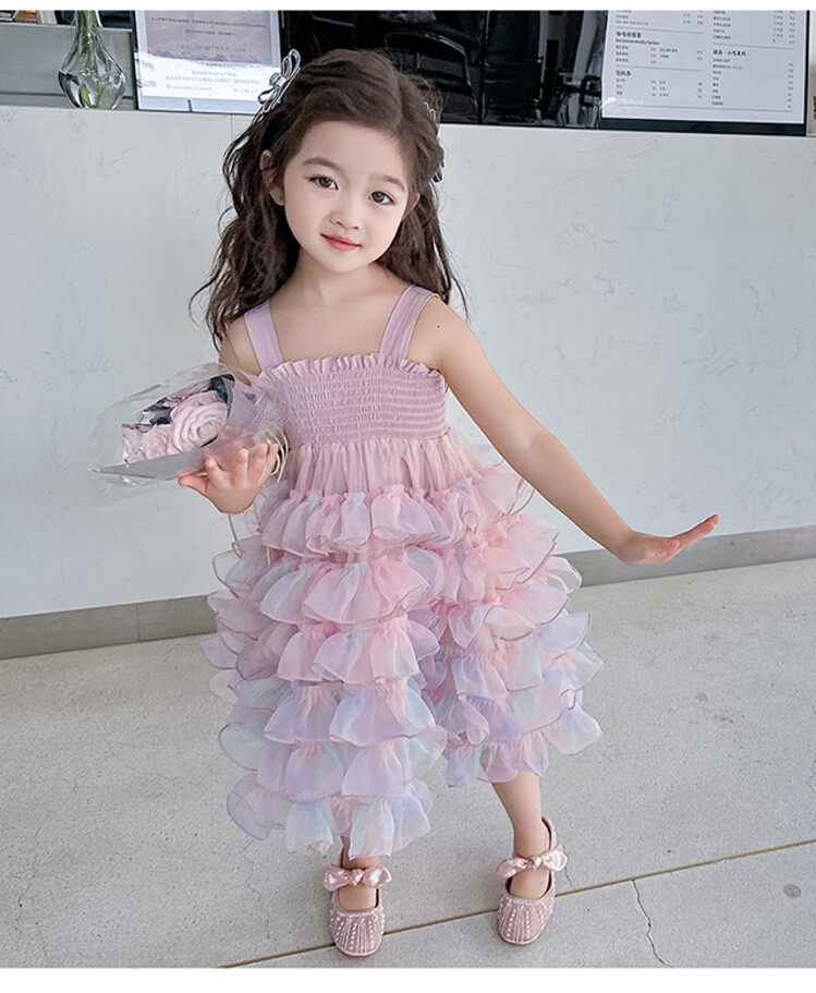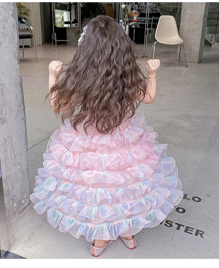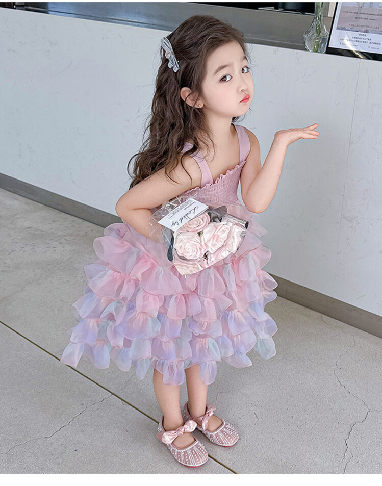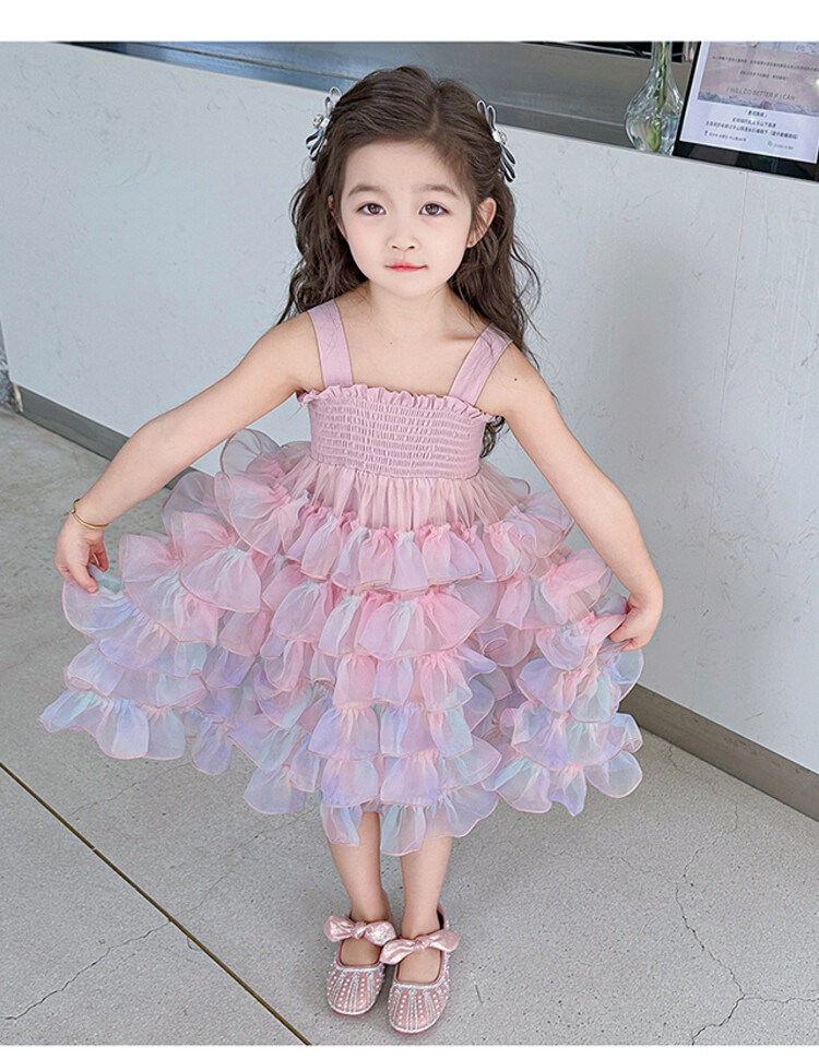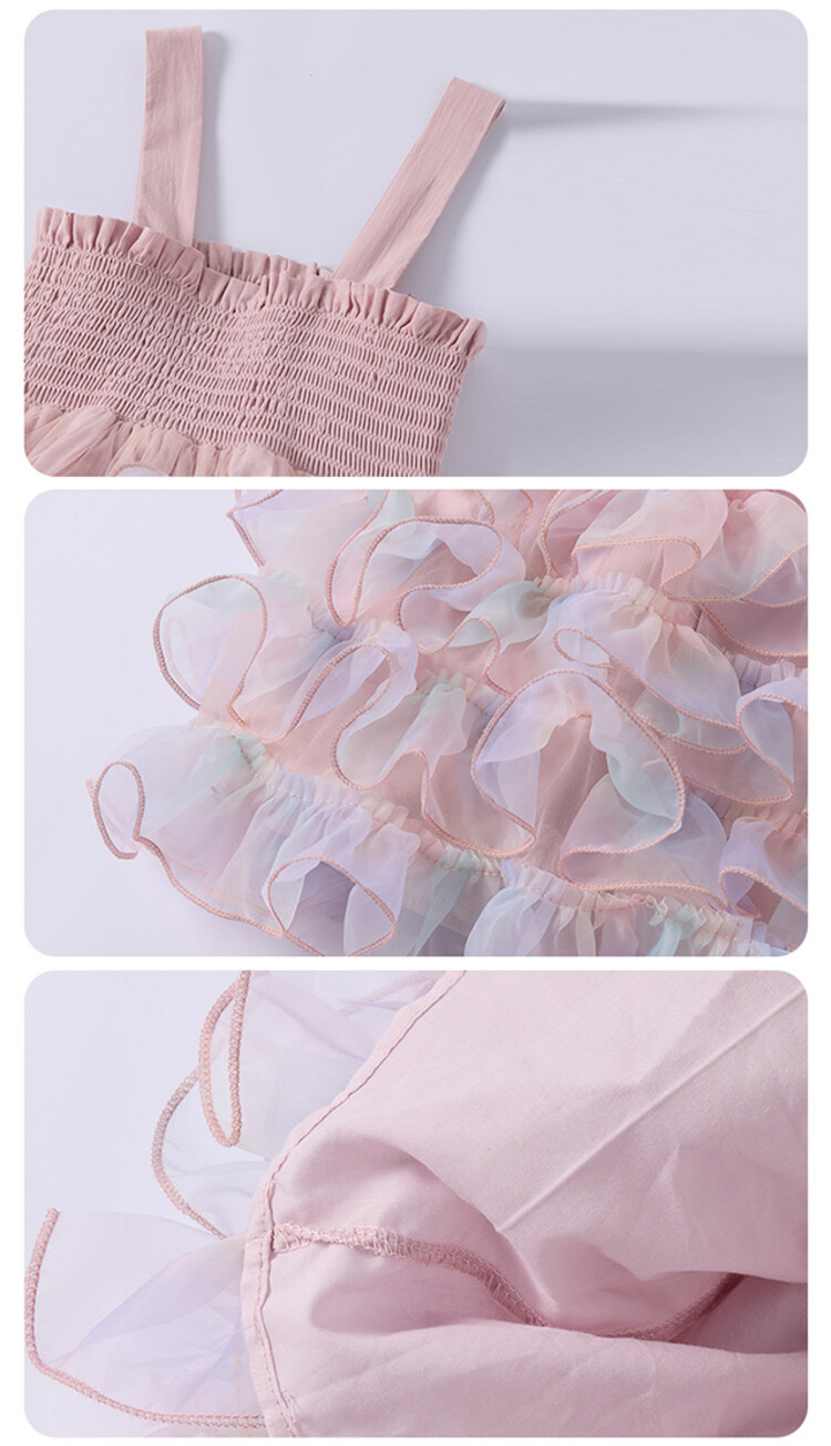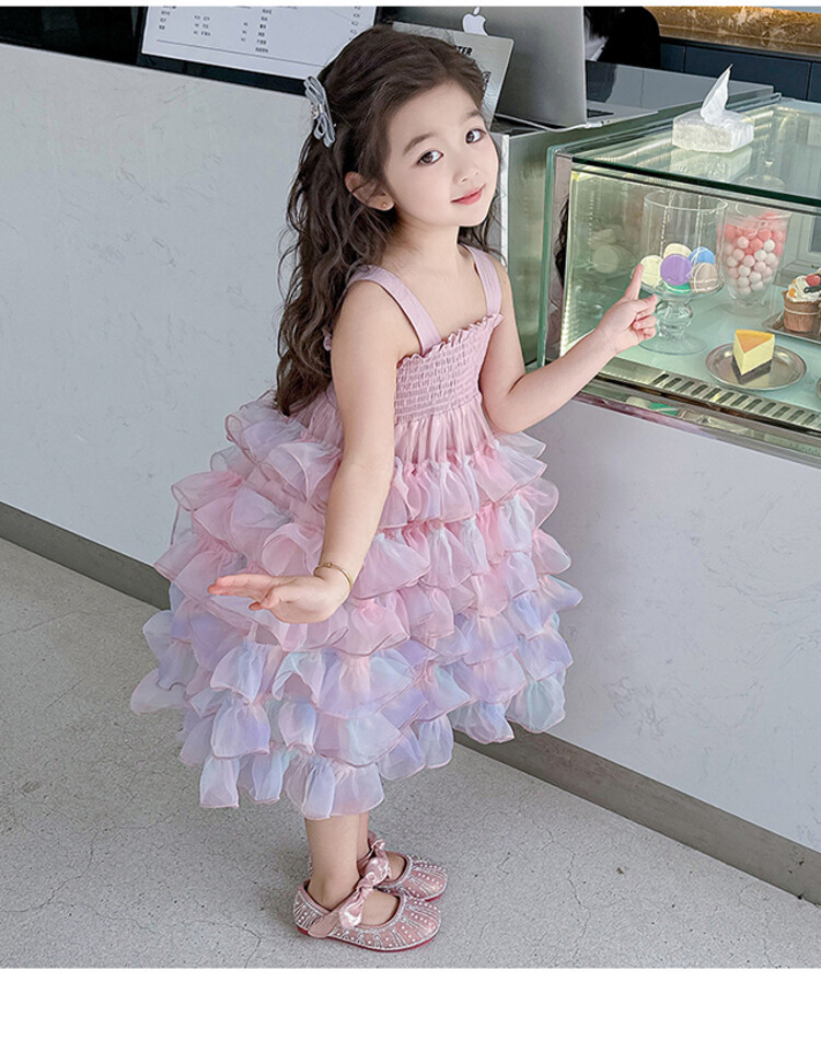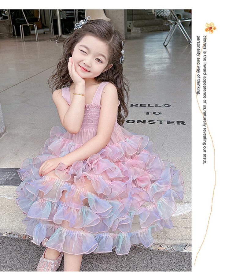 여자 원피스 2025 새로운 도착 레인보우 슬링 원피스 여름 웨스턴 스타일 공주 스커트 판초 베일 스커트