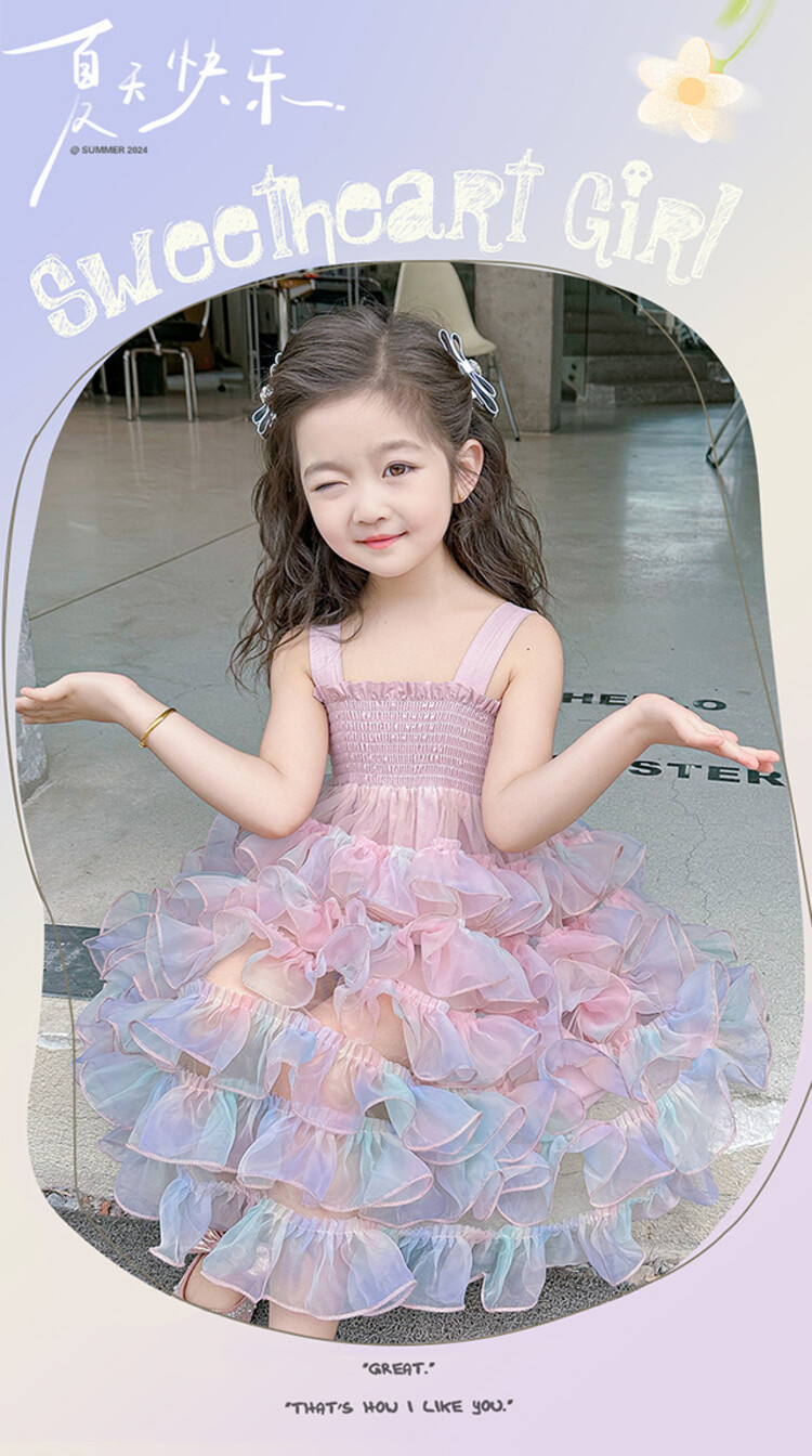 여자 원피스 2025 새로운 도착 레인보우 슬링 원피스 여름 웨스턴 스타일 공주 스커트 판초 베일 스커트스토어 가기
