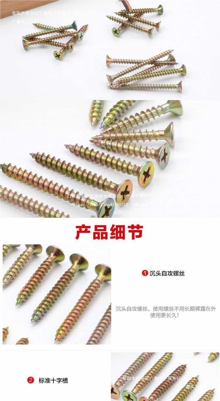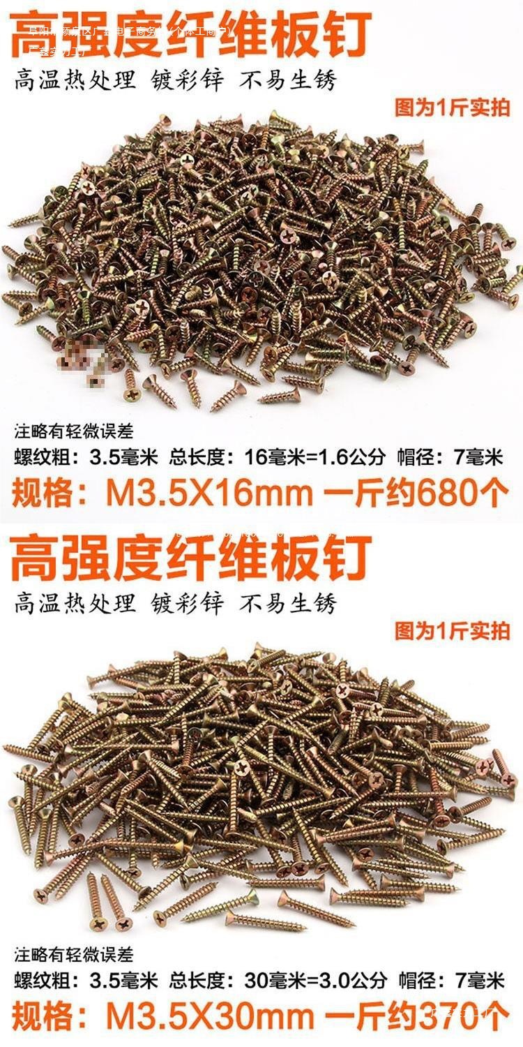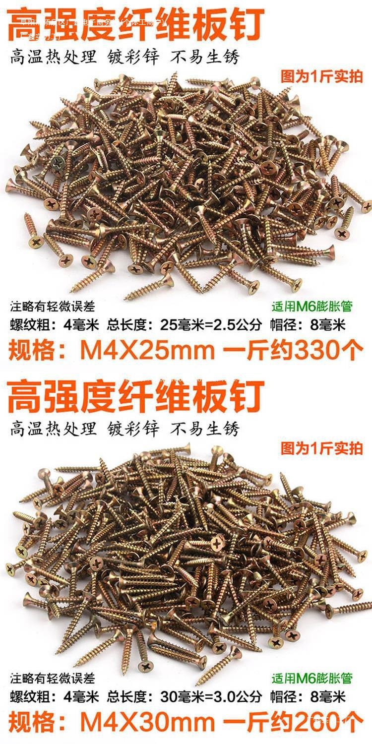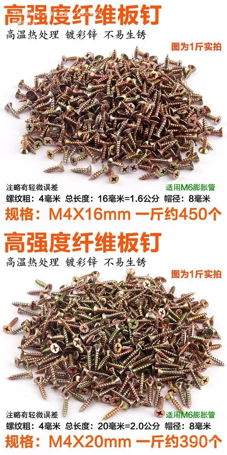 셀프 태핑 스크류 M4 네일 벽 보드 아연 단단한 고체 섬유 컬러 노란색 가방 높은 경도 크로스 우드 네일 메일 카운터 침몰 헤드 마른 벽