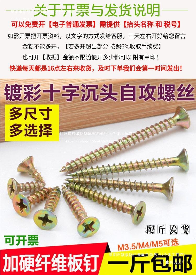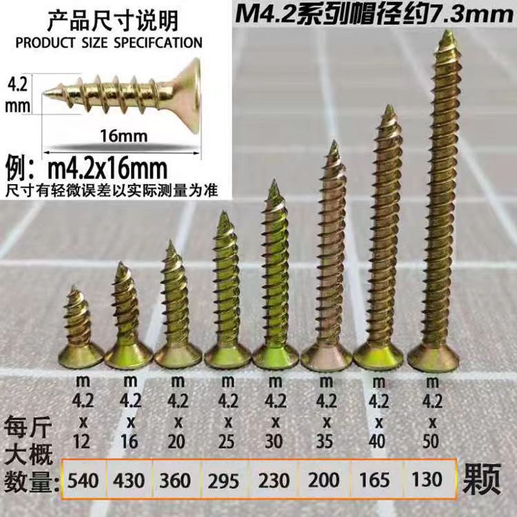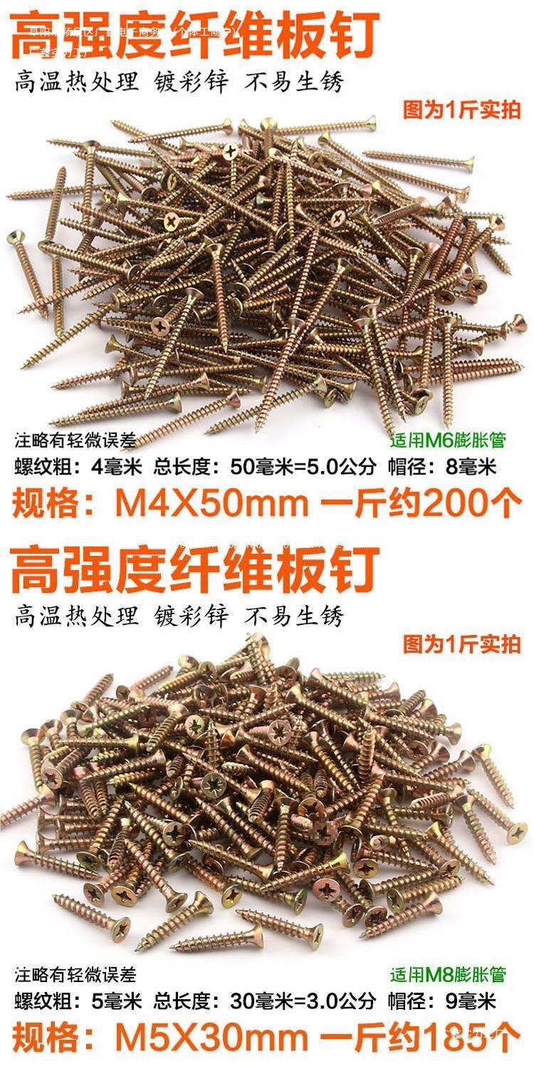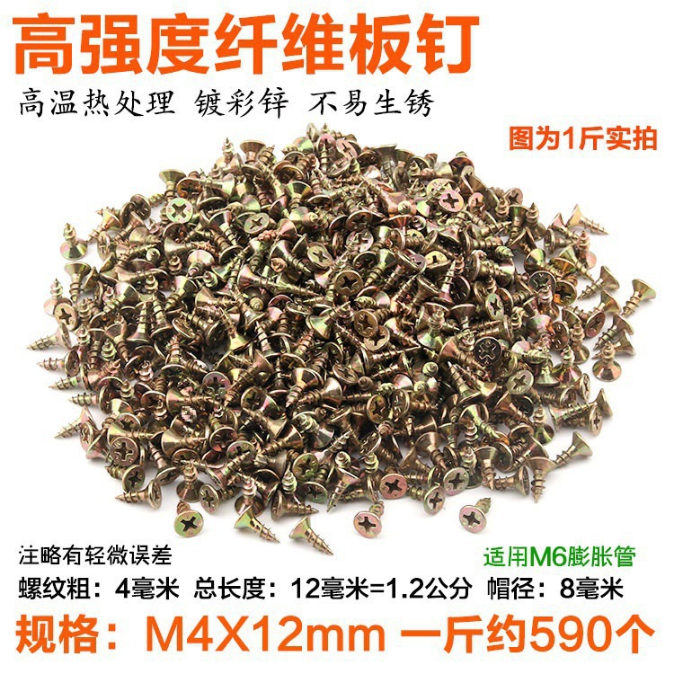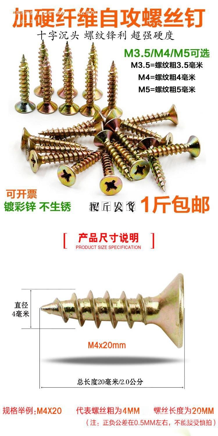 셀프 태핑 스크류 M4 네일 벽 보드 아연 단단한 고체 섬유 컬러 노란색 가방 높은 경도 크로스 우드 네일 메일 카운터 침몰 헤드 마른 벽